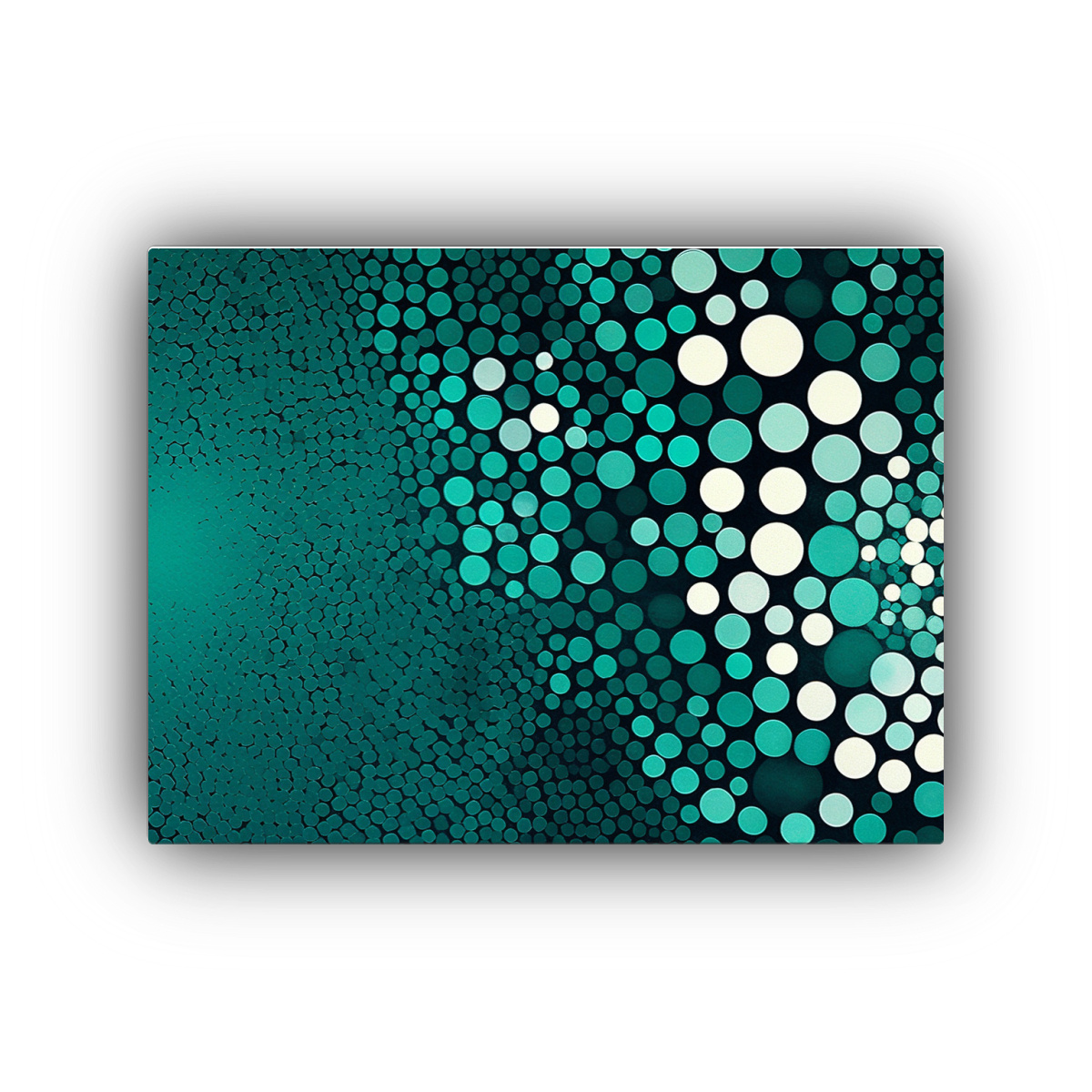 Este cuadro abstracto de puntos blancos sobre fondo verde es perfecto para decorar tu sala de estar o tu oficina Colócalo en una pared blanca para que resalten los colores y crea un punto focal único en el ambiente Combínalo con muebles en tonos neutros para lograr un contraste moderno y elegante