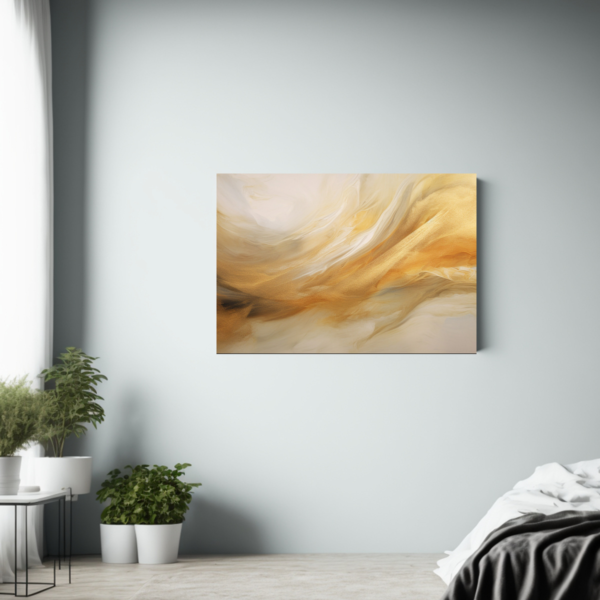 Este cuadro es perfecto para realzar la sofisticación de tu sala de estar o dormitorio Colócalo en una pared blanca para que las pinceladas doradas y los tonos suaves resalten y armonicen con la decoración existente