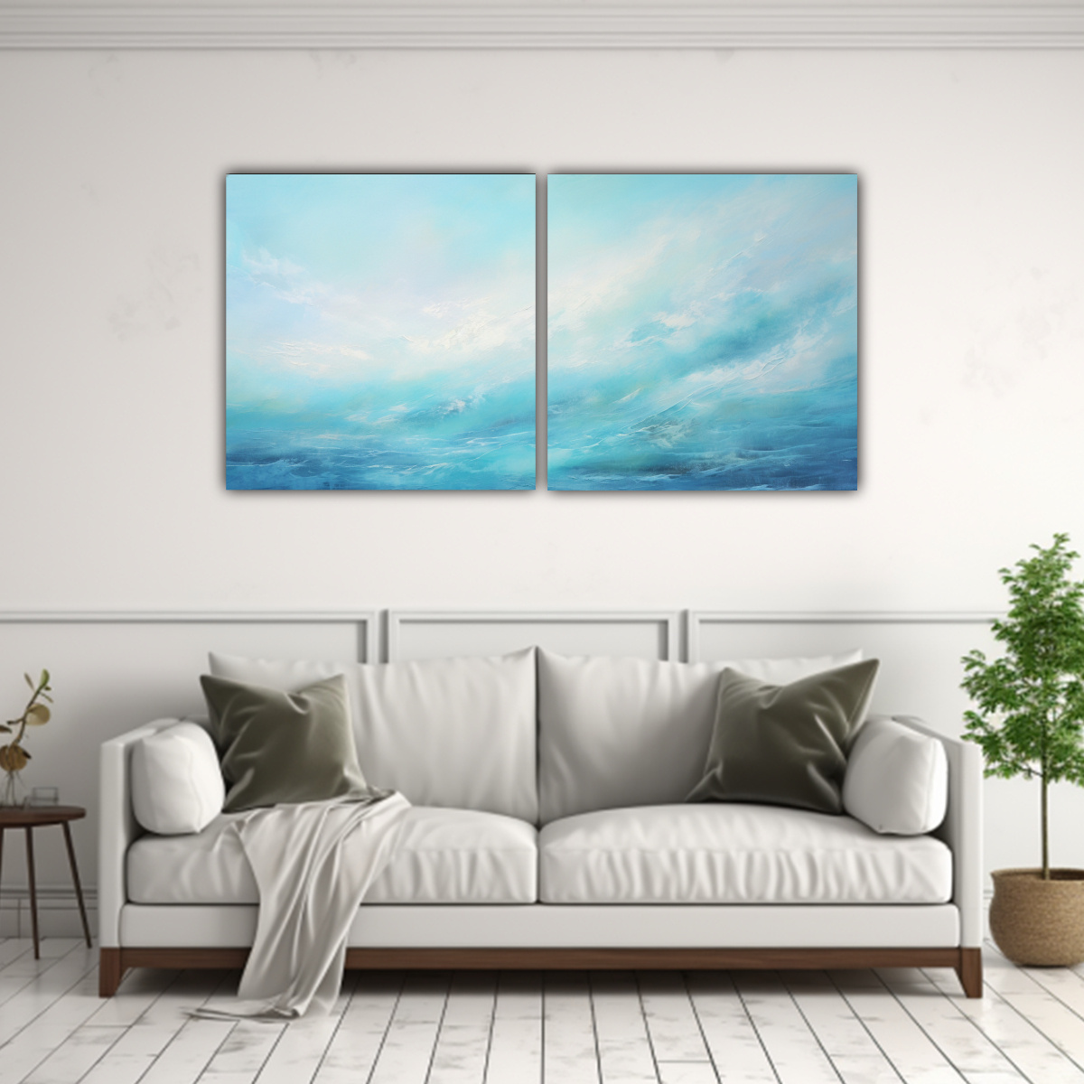 Renueva tu espacio con esta pintura única que evoca la serenidad del cielo y el mar en tonos turquesa Perfecta para salas de estar, dormitorios o espacios de relajación Atrévete a decorar con estilo y personalidad
