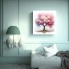 Una excelente idea para decorar con este cuadro es colgarlo en el salón principal o en la sala de estar, ya que sus colores claros y luminosos crearán un ambiente relajante y acogedor Combínalo con muebles en tonos neutros como beige o blanco, y agrega accesorios en colores plateados para resaltar aún más la belleza de esta pintura abstracta acuarela árbol cerezo