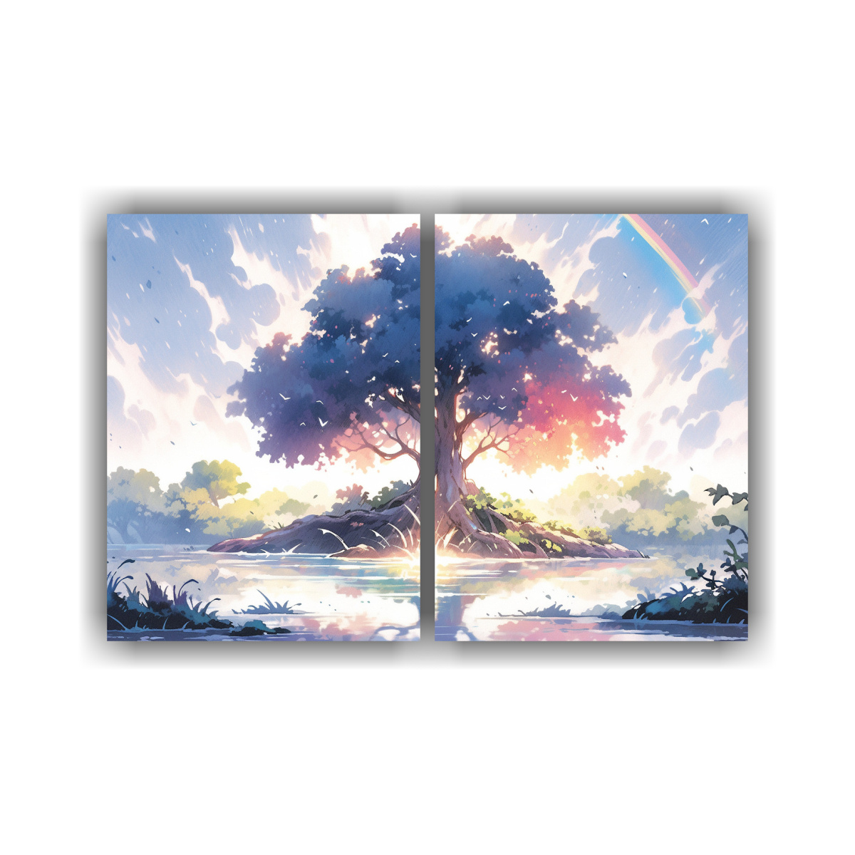 Pintura Abstracta Acuarela árbol De Manglar Arcoíris Concepto Minimalista
