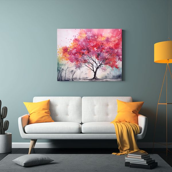 Pintura Abstracta Acuarela árbol Tropical Rosa Colores Alegres En Lienzo