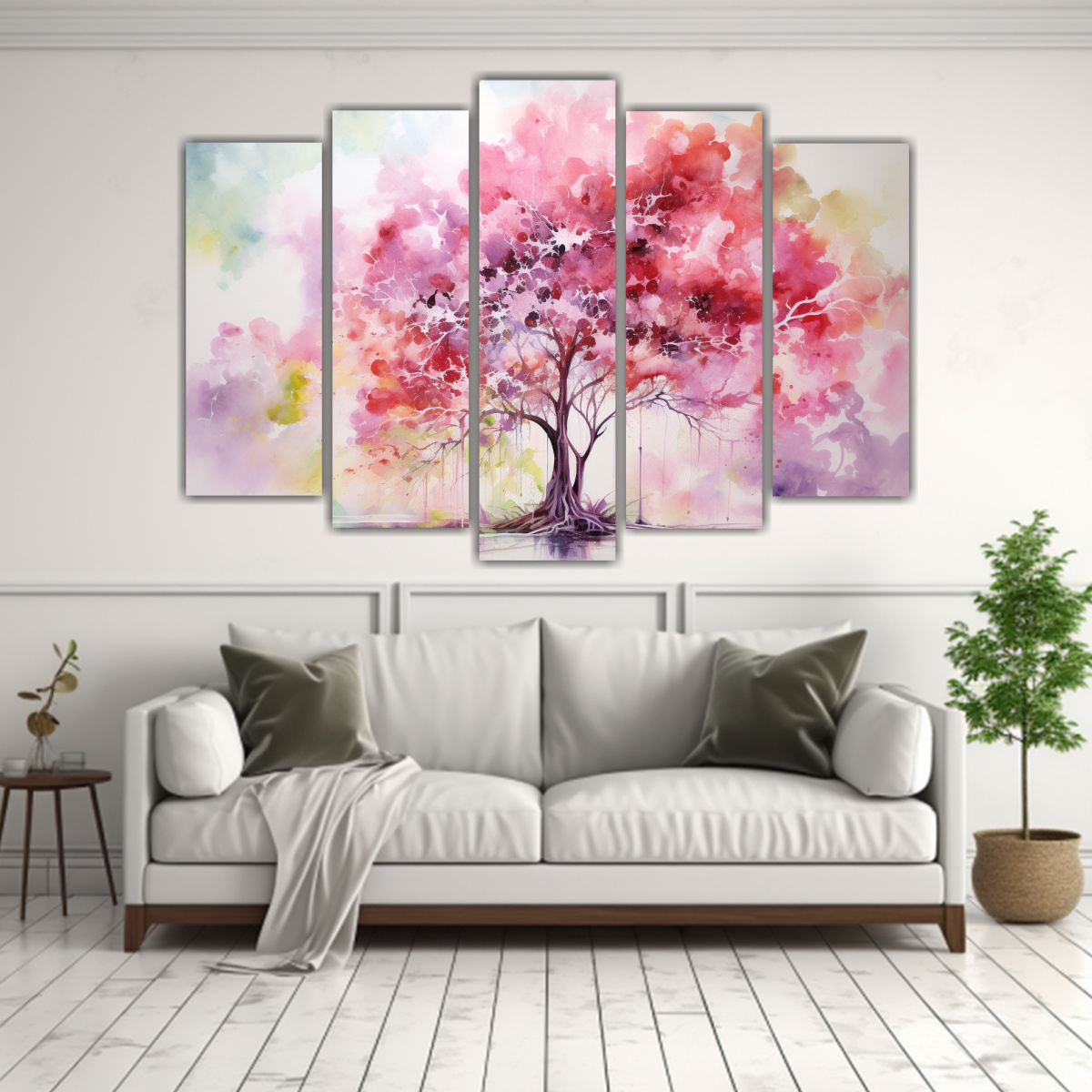 Pintura Abstracta Acuarela árbol Tropical Rosa Colores.