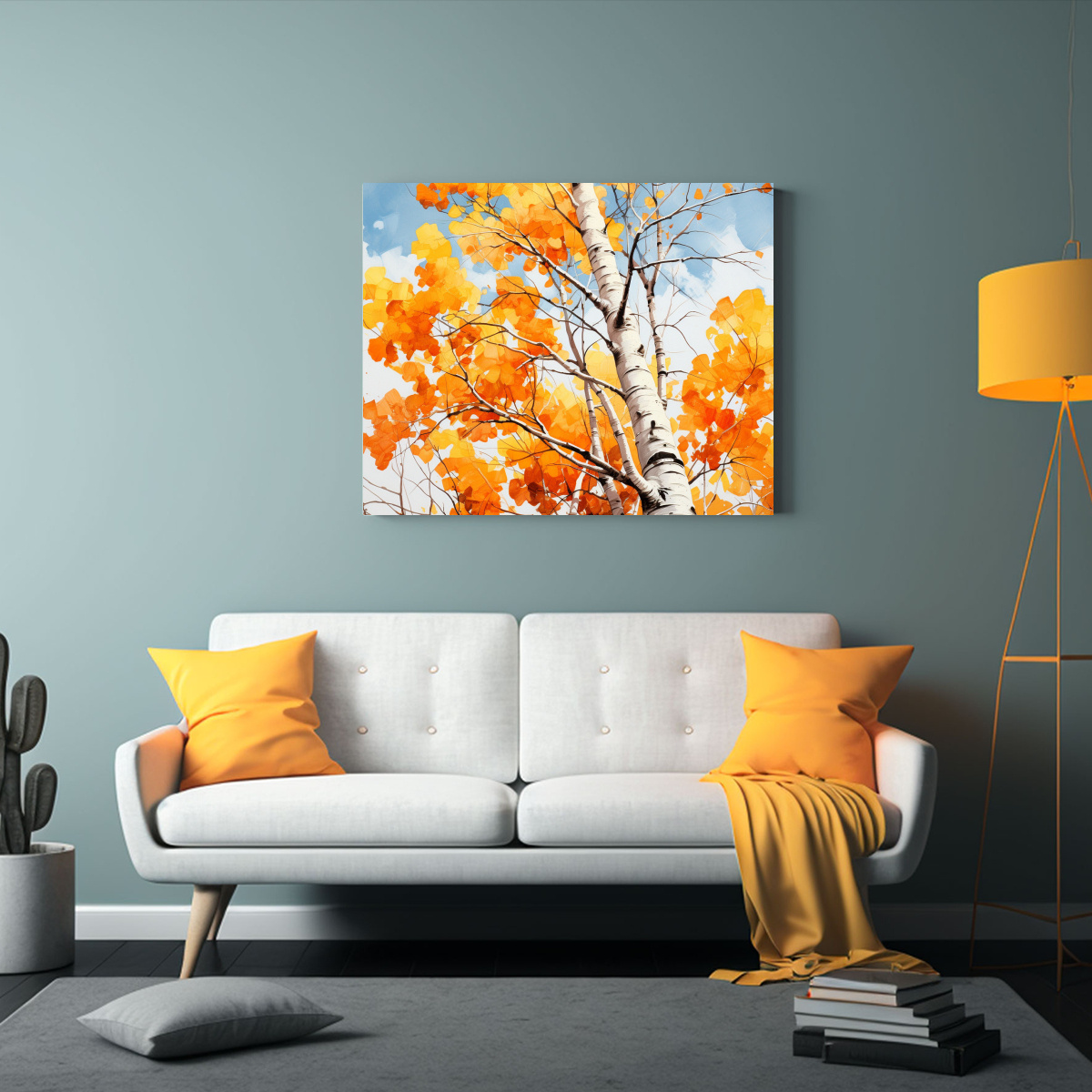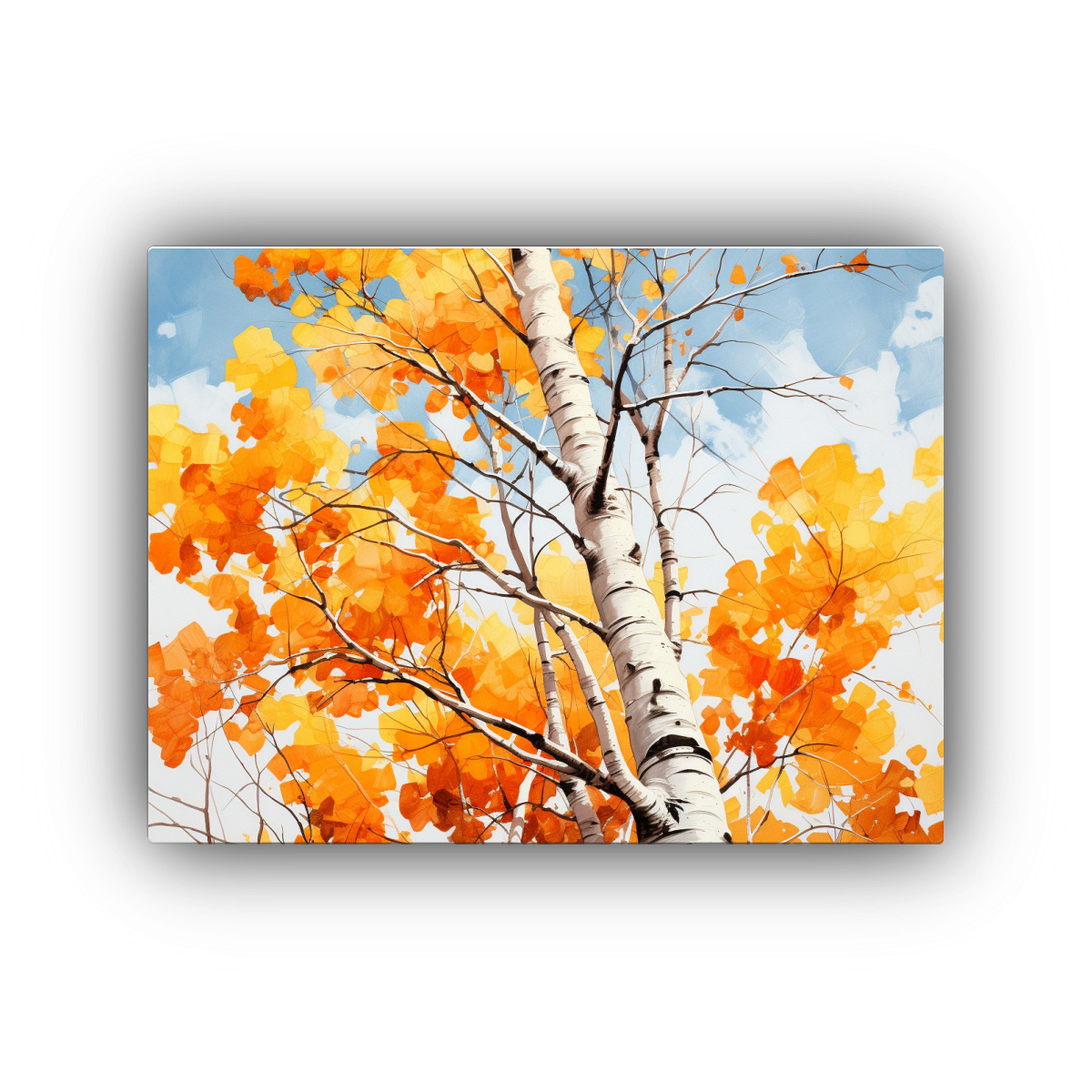 Pintura Abstracta Acuarela Colores Naranja árbol Aspen En Lienzo