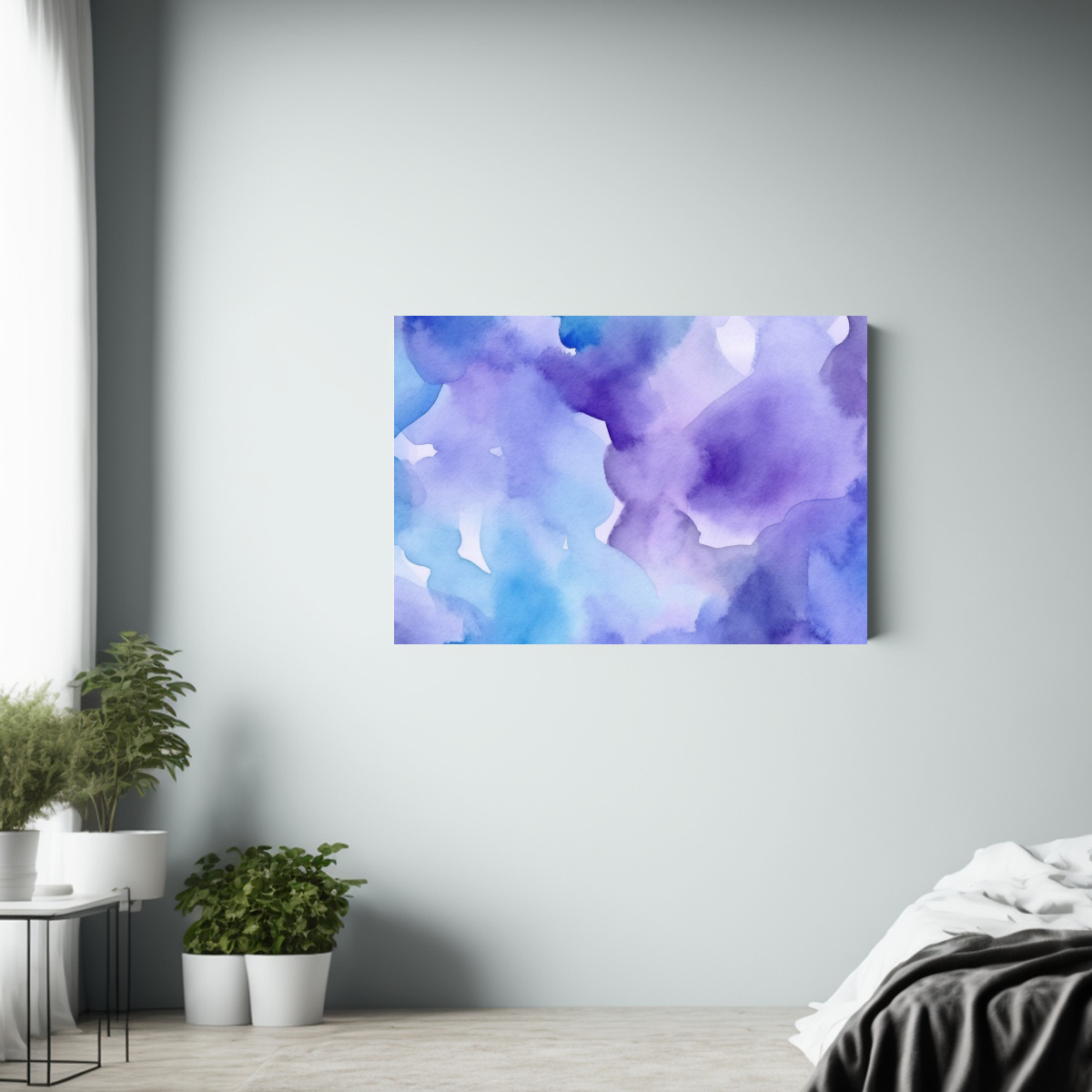 Pintura Abstracta Acuarela En Azules Y Morados: Arte De Pared