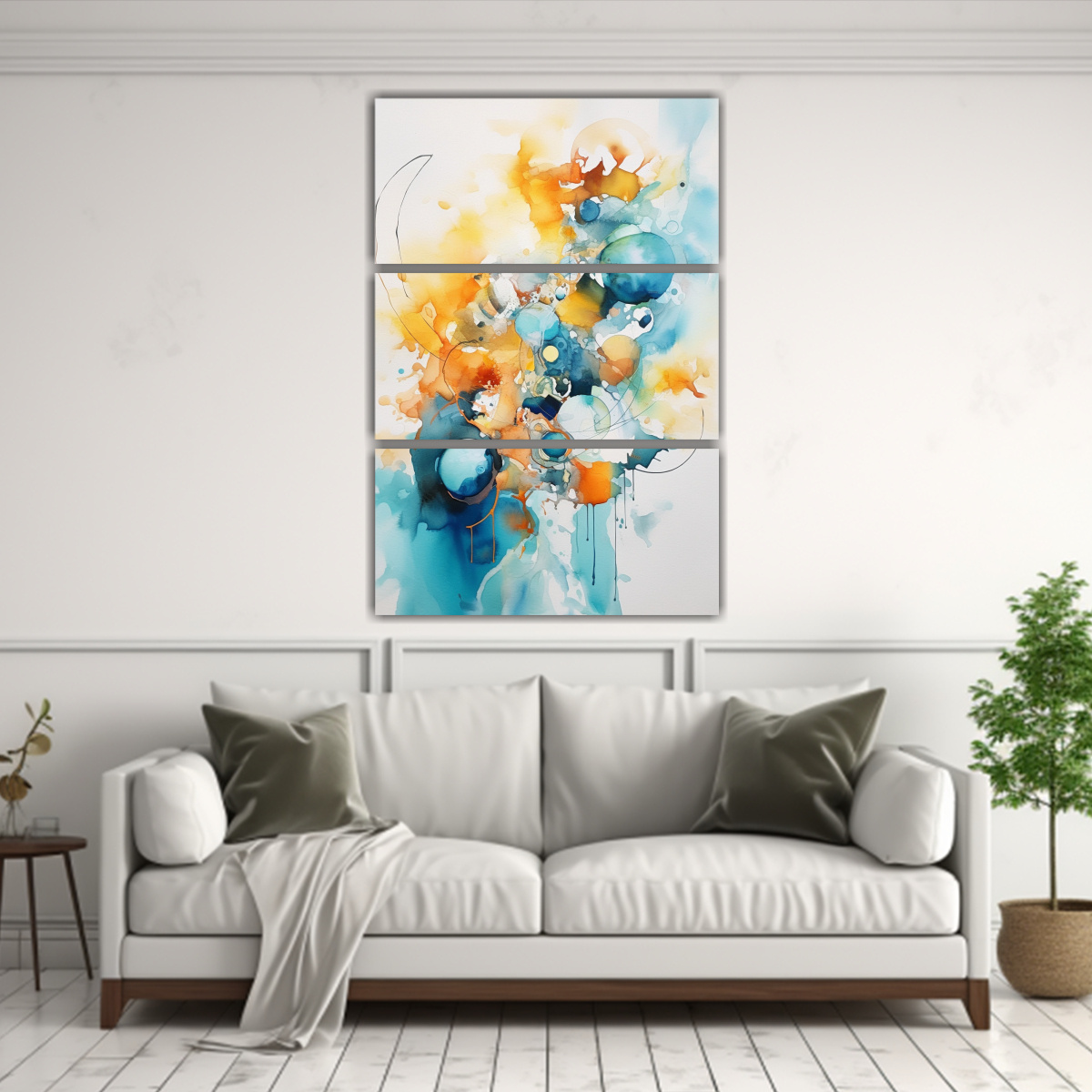 Coloca este cuadro abstracto acuarela equilibrada en el salón de tu hogar para crear un ambiente moderno y sofisticado Combínalo con muebles en tonos neutros como beige o gris para resaltar los colores vibrantes de la pintura ¡Será el centro de atención de tus visitas!