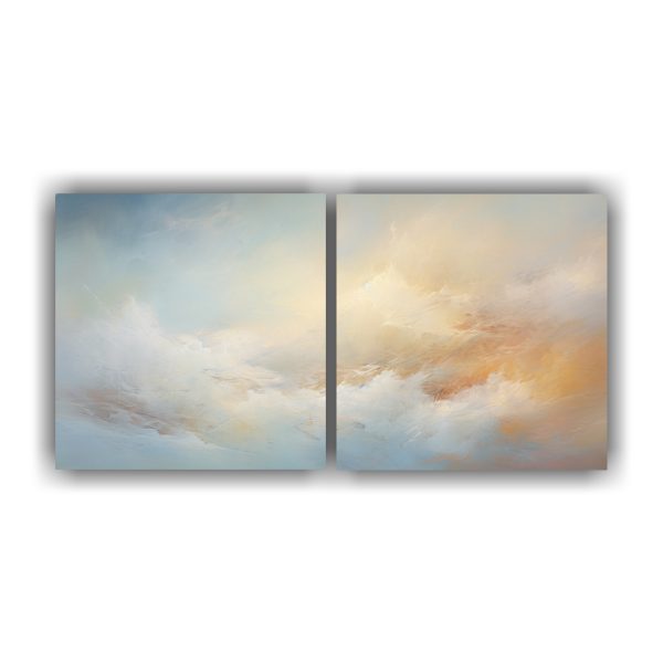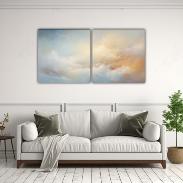 Pintura Abstracta Amanecer Con Colores Blancos; Set 2 Lienzo Decorativo.
