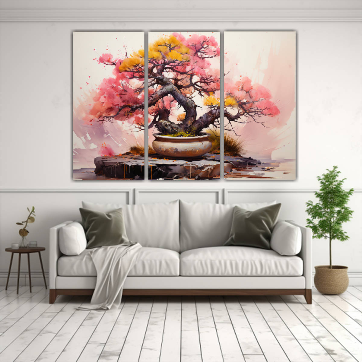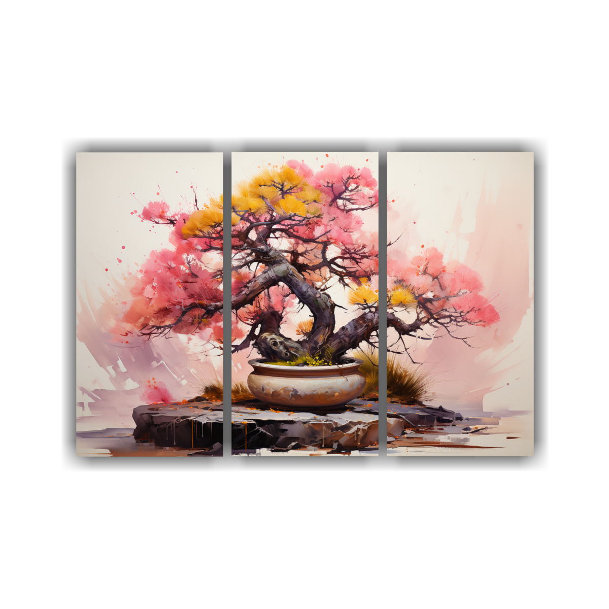 Pintura Abstracta árbol Pino Amarillo Y Rosa Para Decorar Comedor