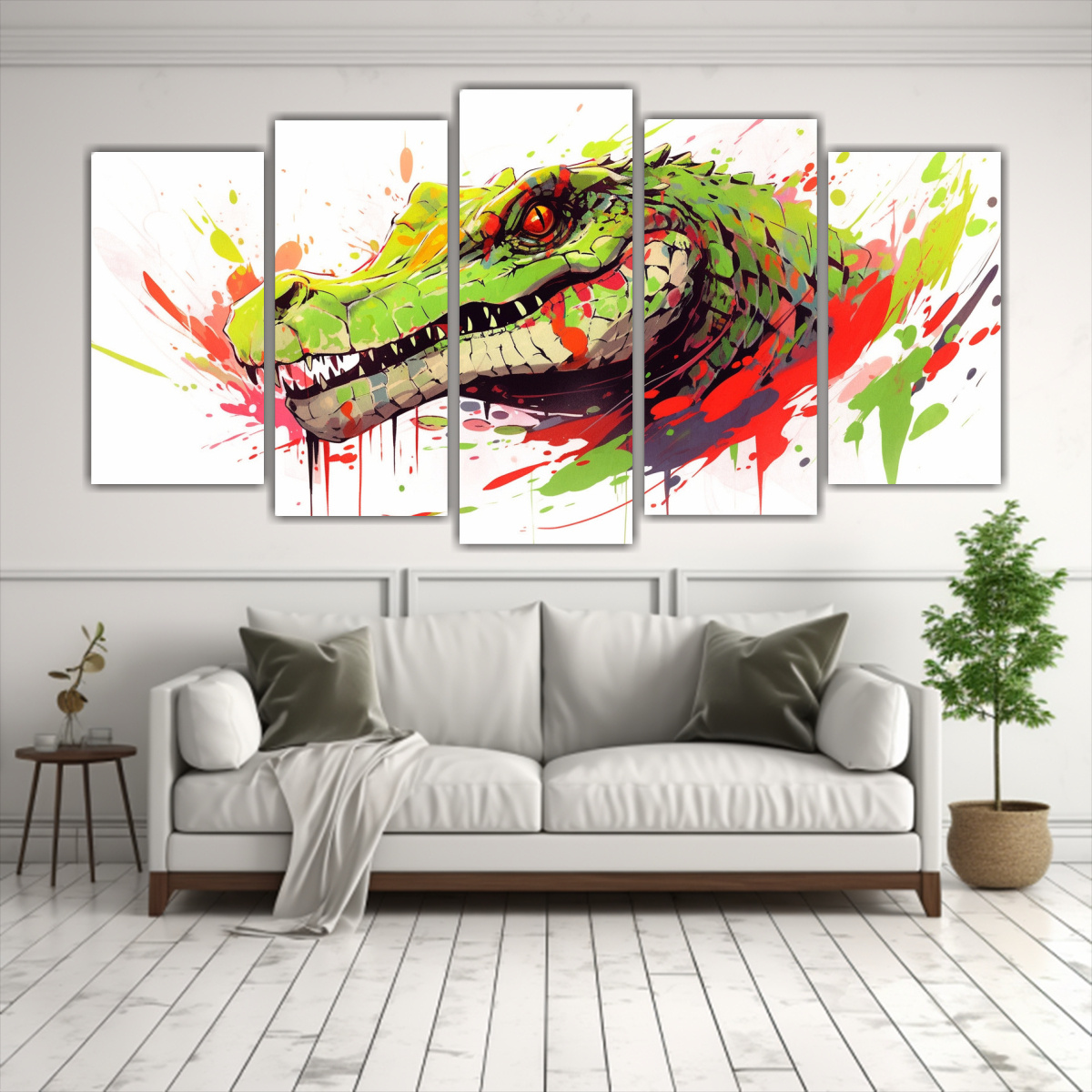 Pintura Abstracta Armonía Cocodrilo Verde Y Rojo Pop Art En Decoración
