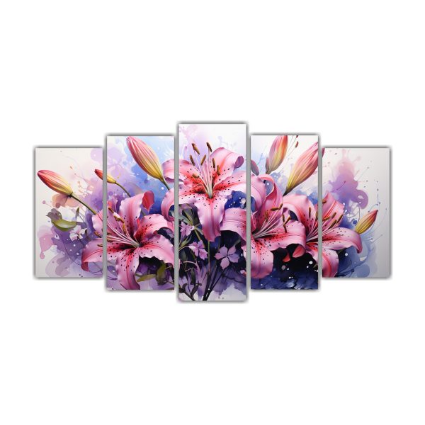Cinco Composiciones Abstracción Armonía de colores A Lilies flowers Purple AND Pink Colors abstract painting disponibles en nuestra tienda online Diseños exclusivos de alta calidad impresos en tela con bastidores de madera Envíos rápidos y gratuitos en Santiago, ¡no te lo pierdas!