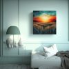 Pintura Abstracta Atardecer Sobre Un Campo En Bastidor Estilo Galería