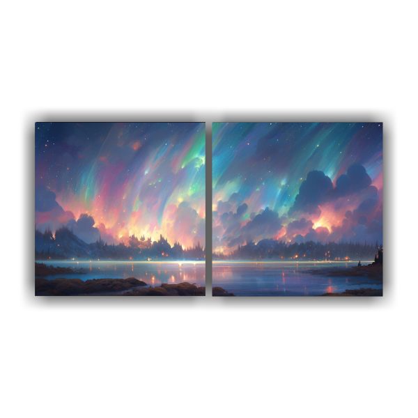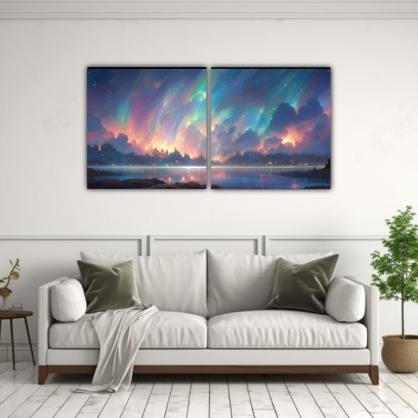 Pintura Abstracta Aurora Boreal Arcoíris Y Colores Vibrantes