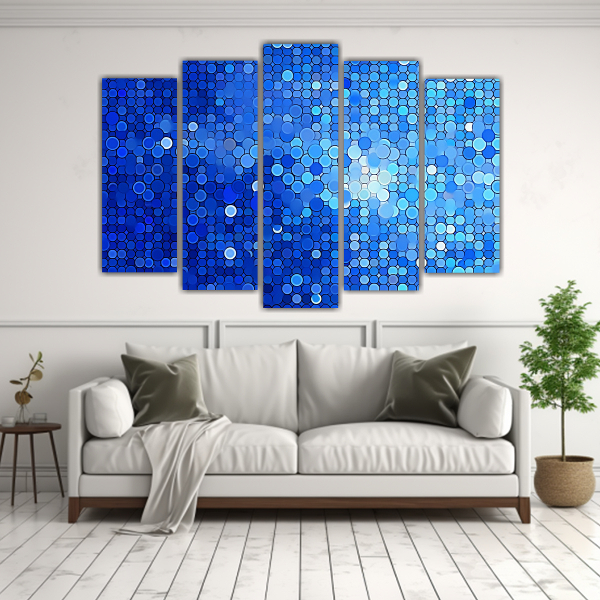 Pintura Abstracta Azul Con Círculos Pequeños En Equilibrio Visual.