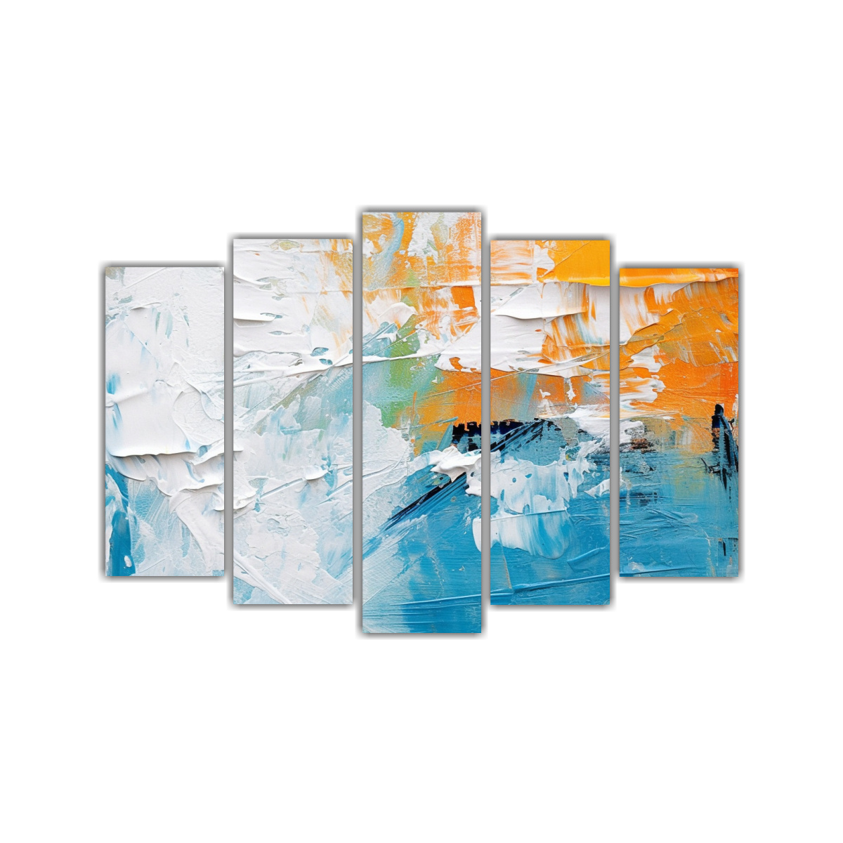 Dale un toque único a tus espacios con este cuadro abstracto en tonos azul, naranja y verde Envíos rápidos y gratuitos en Santiago, diseños exclusivos y la mejor calidad en DecoCuadros