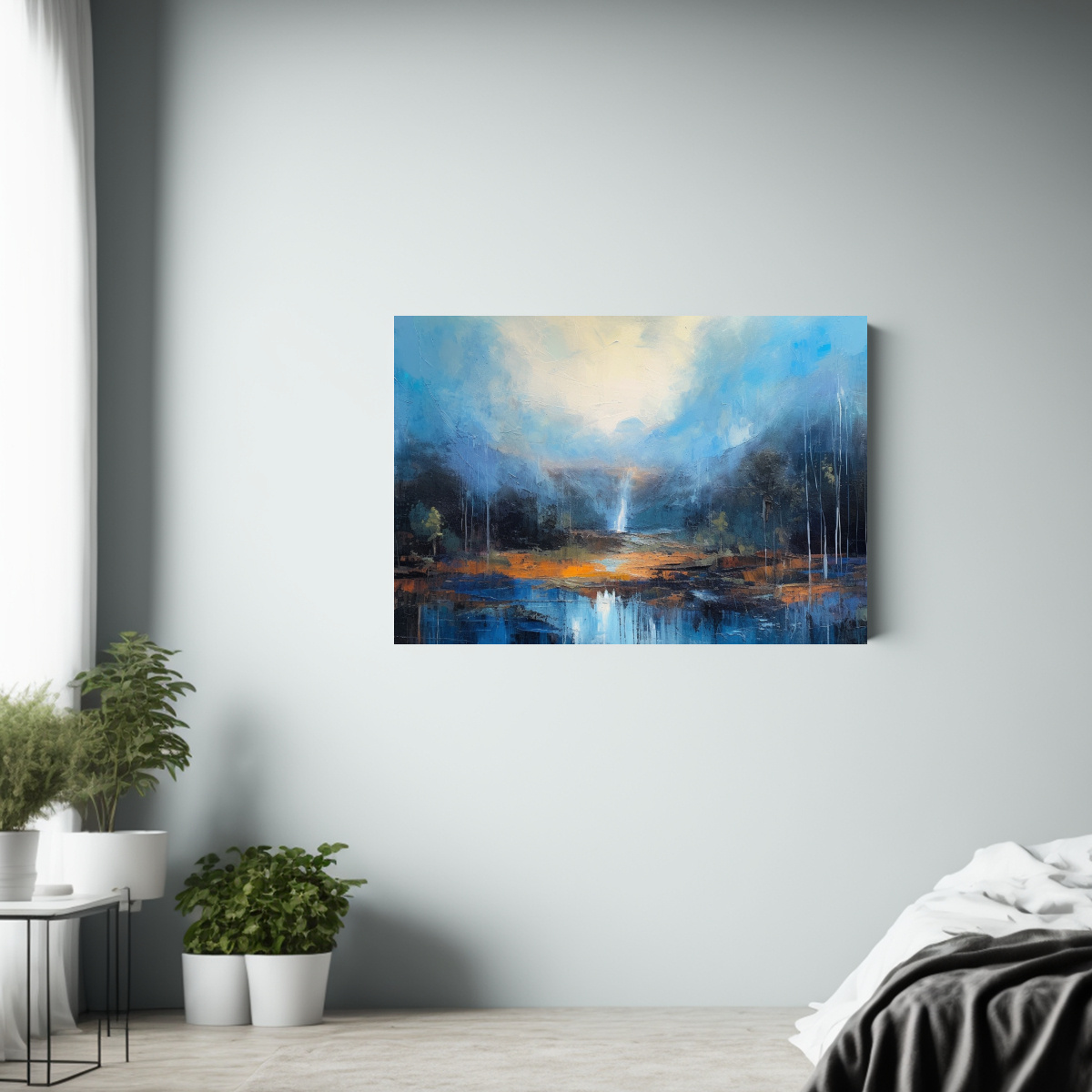 Pintura Abstracta Azul Poder Moderno Paisaje.