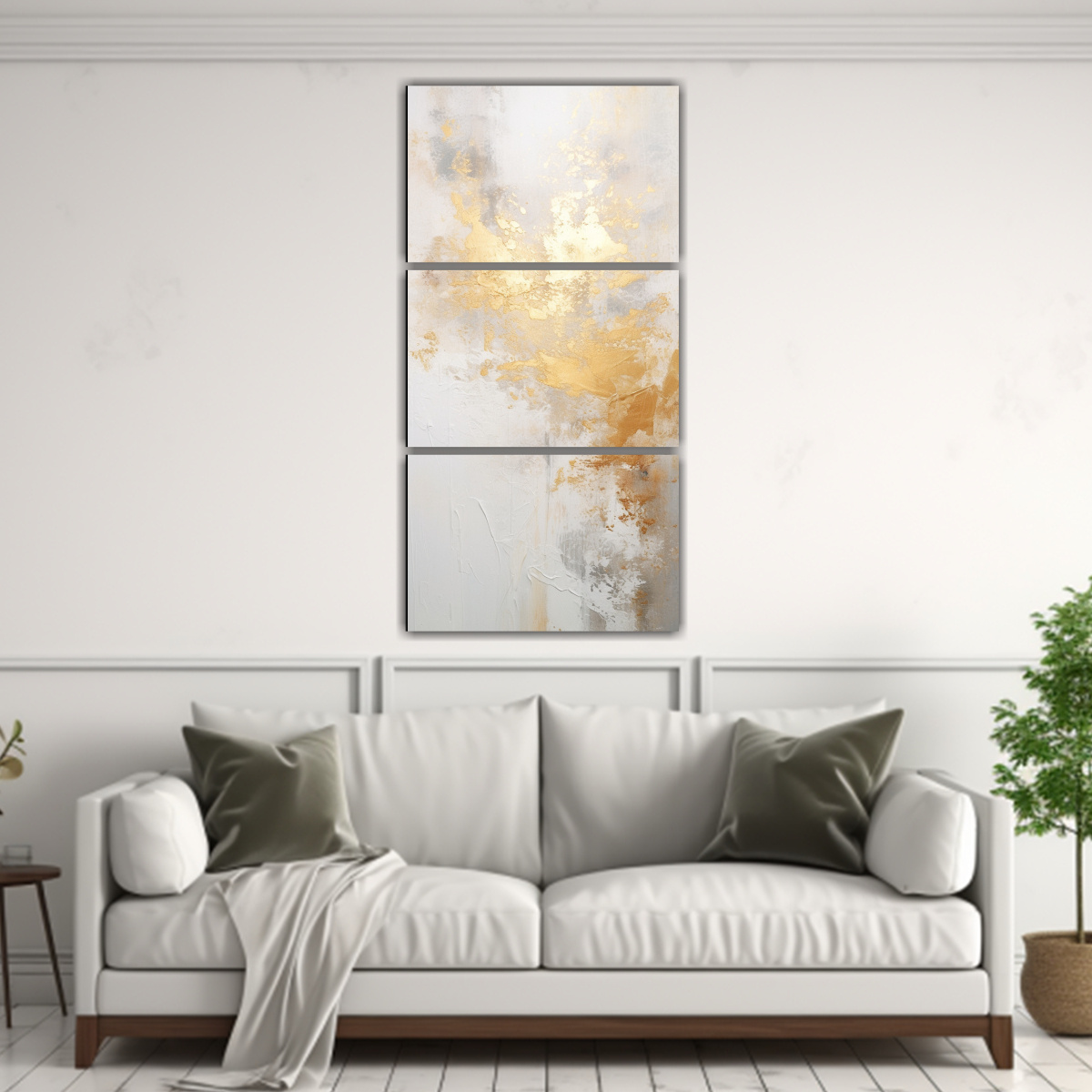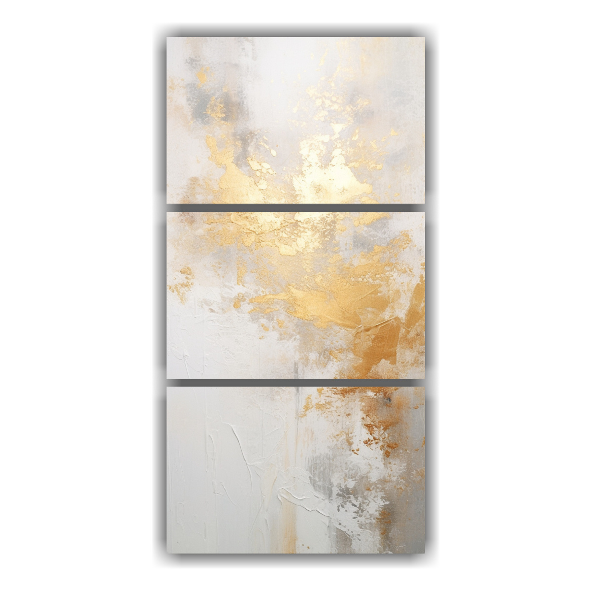 Pintura Abstracta Blanca Con Salpicaduras Doradas Tres Artes Tema Intensidad
