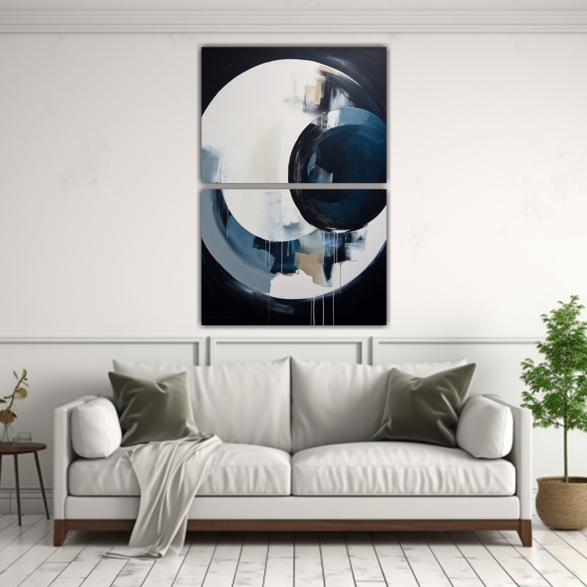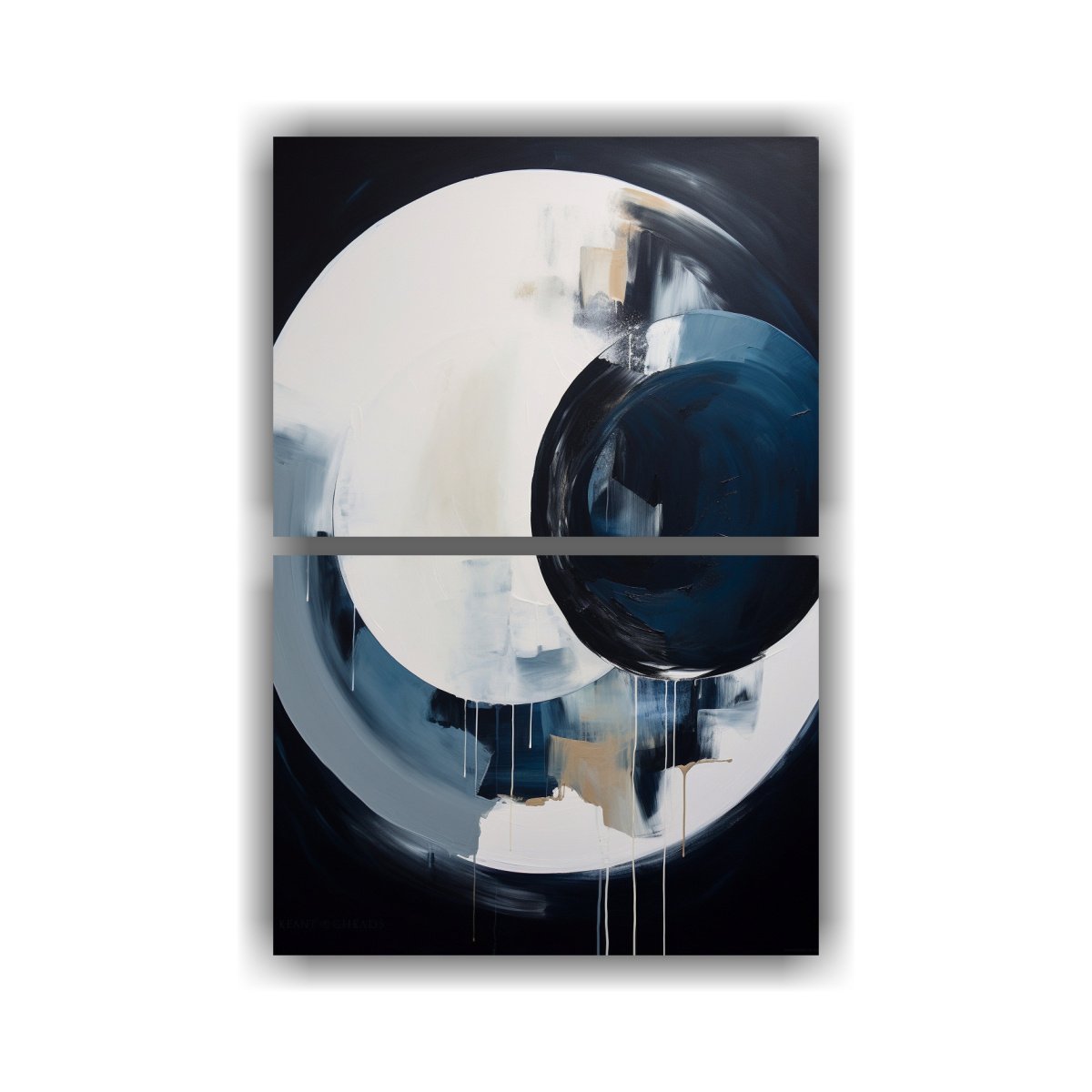 Pintura Abstracta Blanco, Negro Y Azul Para Decoración