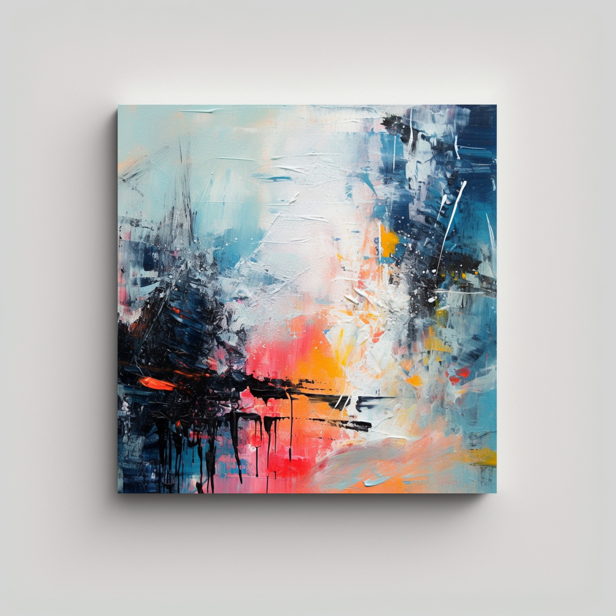 Descubre nuestra pintura abstracta cálida y linda para decoración Una composición de colores plateado, azul marino grisaceo, gris, carmesí, coral, menta y turquesa que llenará de vida tus espacios Tenemos diseños exclusivos, la mejor calidad y los precios más baratos del mercado Envío gratis y entregas rápidas en Santiago Envíos express a regiones