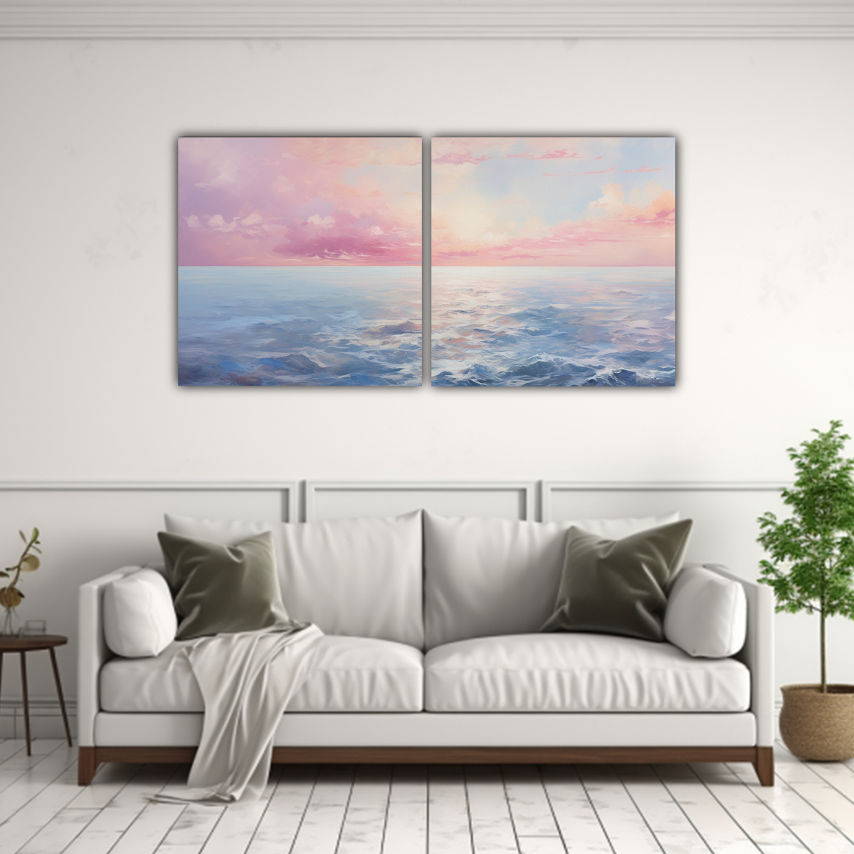 Pintura Abstracta Calma: Cielo Y Mar En Tonos Rosa