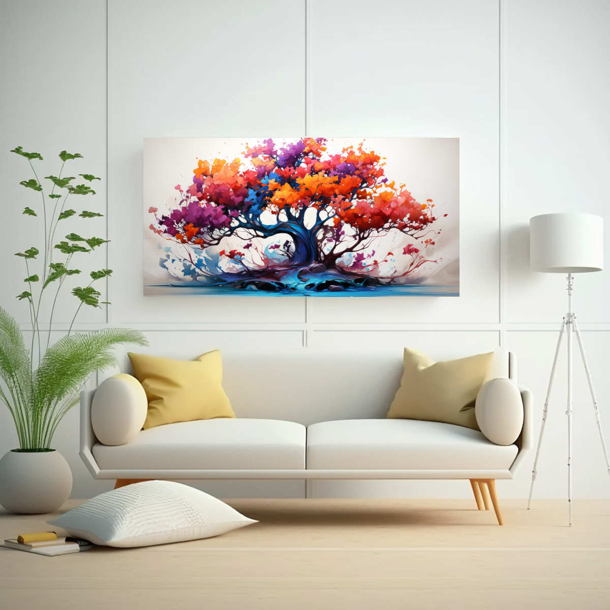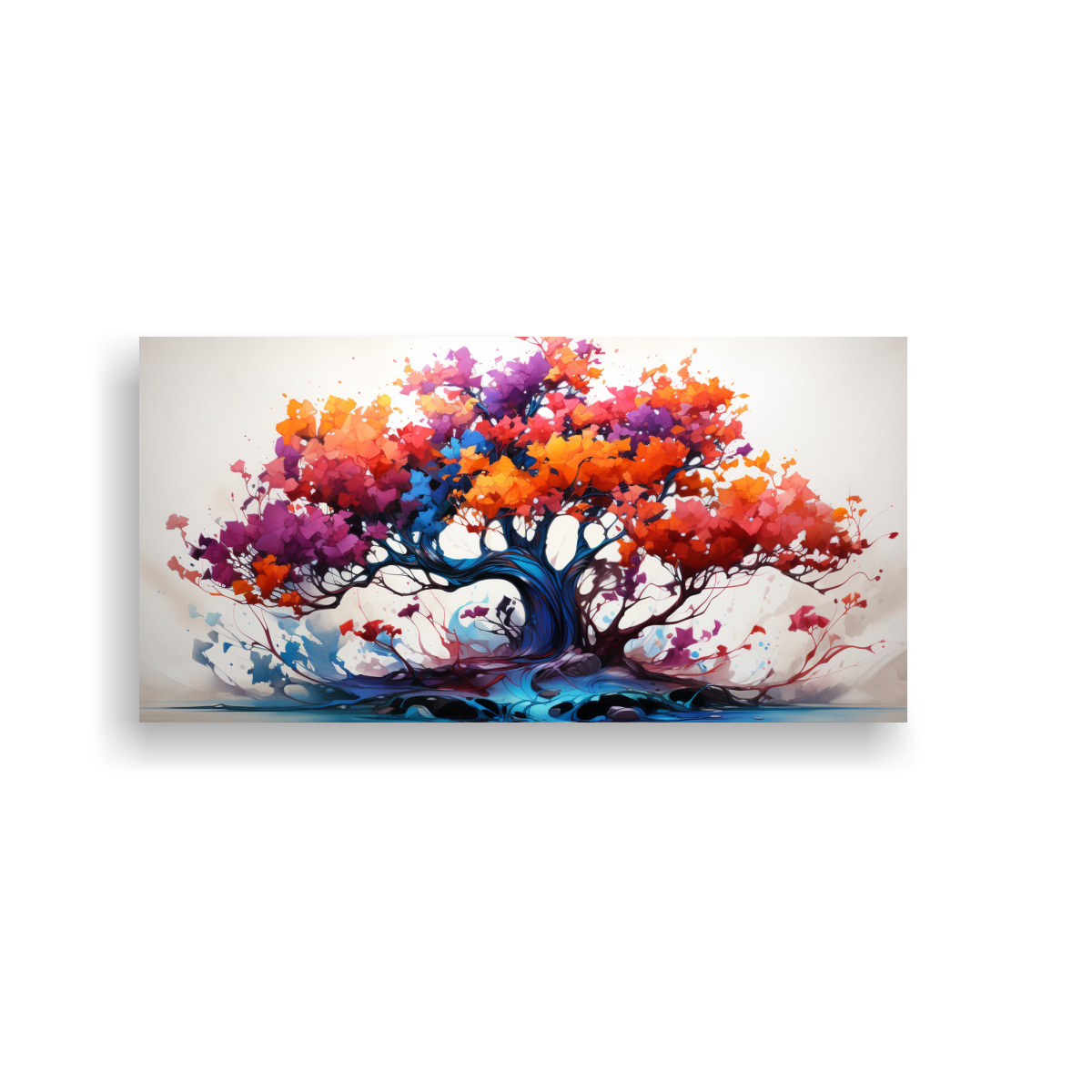 Agrega un toque de color a tus ambientes con el cuadro abstracto colores fucsia y naranja sobre lienzo Canva acuarela Fantasia Bonsai Azul Este diseño exclusivo de nuestra tienda combina los colores Carmesí, Azul Marino grisáceo, Beige, Coral, Gris, Lila, Turquesa, Verde Azulado y Plateado, creando una obra única y llamativa
