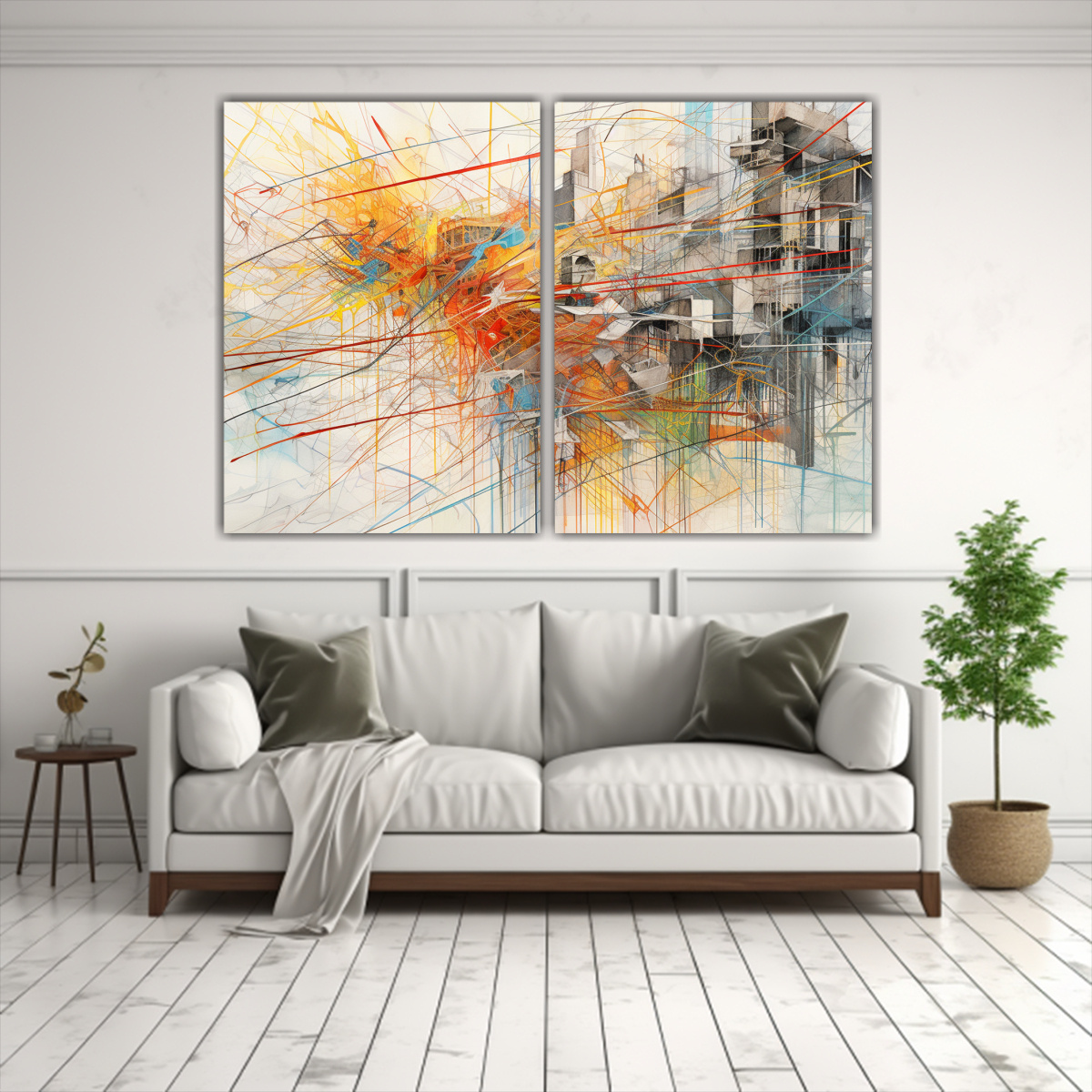 Este cuadro abstracto colorido se vería perfecto en tu sala de estar sobre un sofá gris claro, creando un contraste elegante y moderno Combínalo con cojines en tonos coral y turquesa para un ambiente fresco y lleno de energía