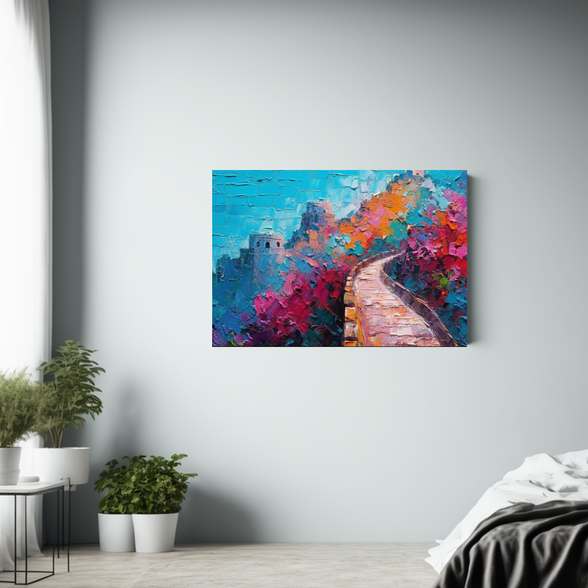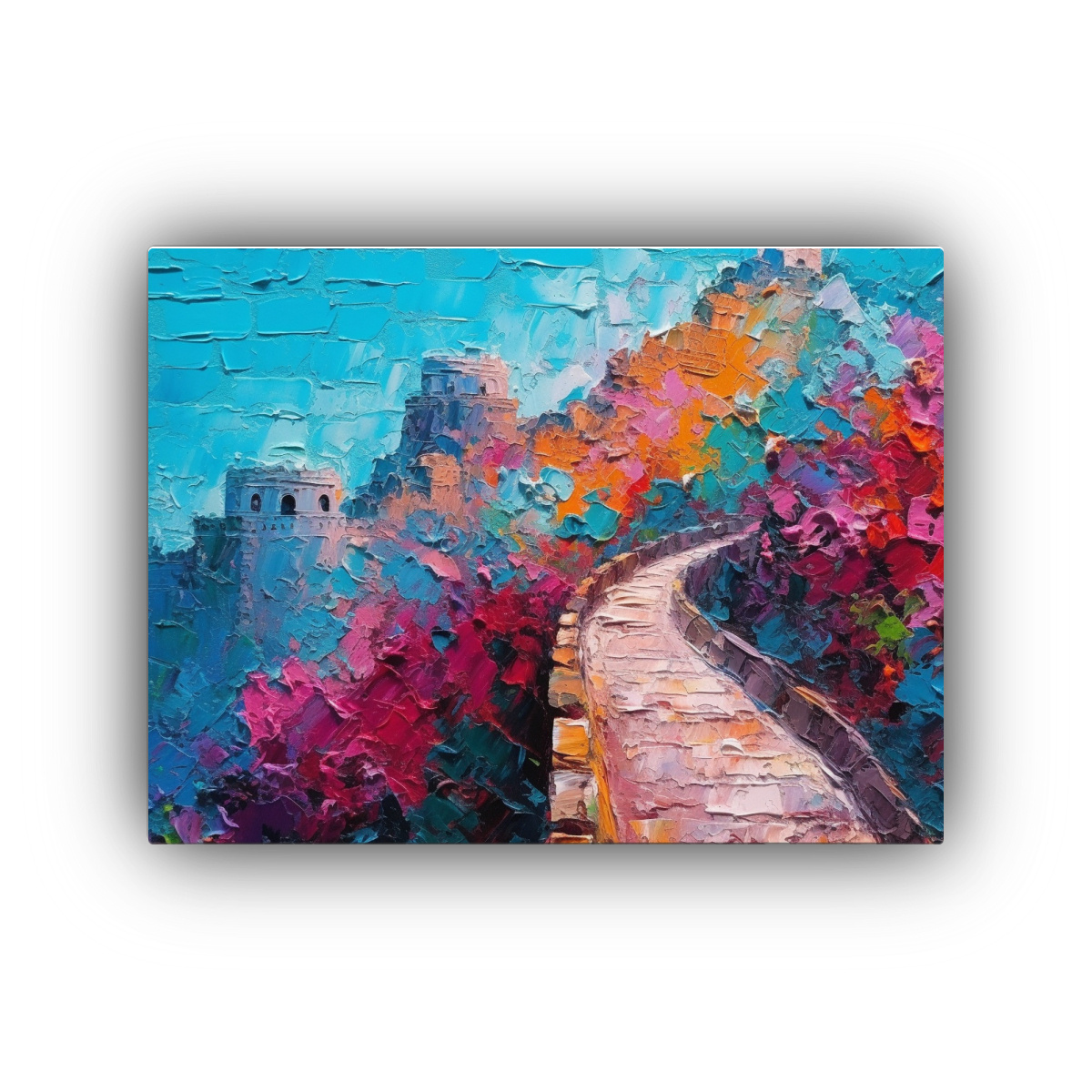 Renueva tu espacio con esta obra de arte moderna, ideal para salas, oficinas o dormitorios La combinación de colores vibrantes y la representación única de la Gran Muralla China le darán un toque distintivo a tu decoración ¡Aprovecha nuestra entrega rápida y gratuita en Santiago y envíos express a regiones!