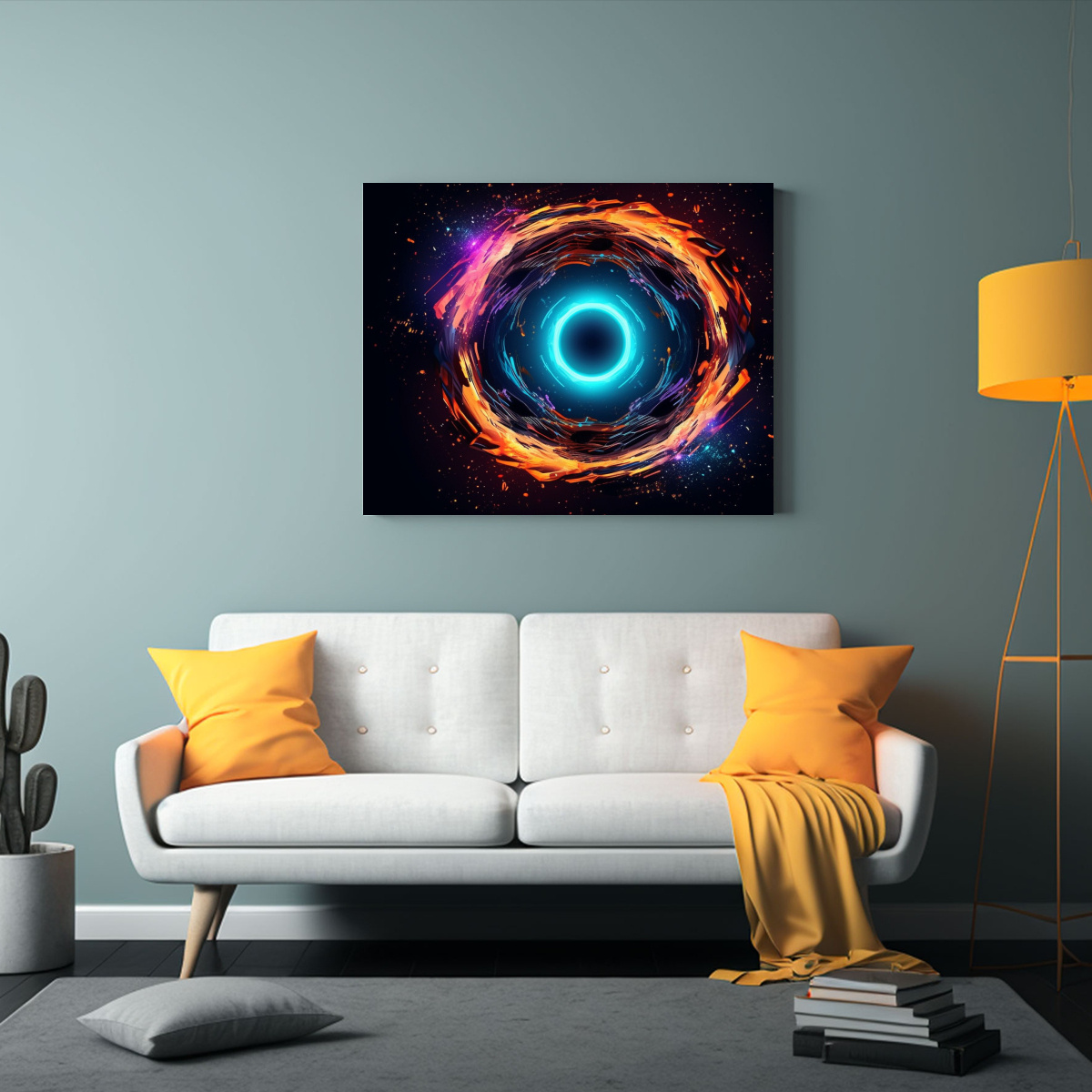 Este cuadro abstracto colorido con iris o portal mágico lucirá espectacular en tu sala, especialmente sobre un sofá blanco para resaltar sus tonos Combínalo con cojines en colores coral y turquesa para lograr una decoración armoniosa y moderna ¡Atrévete a darle un toque mágico a tu hogar con DecoCuadros!