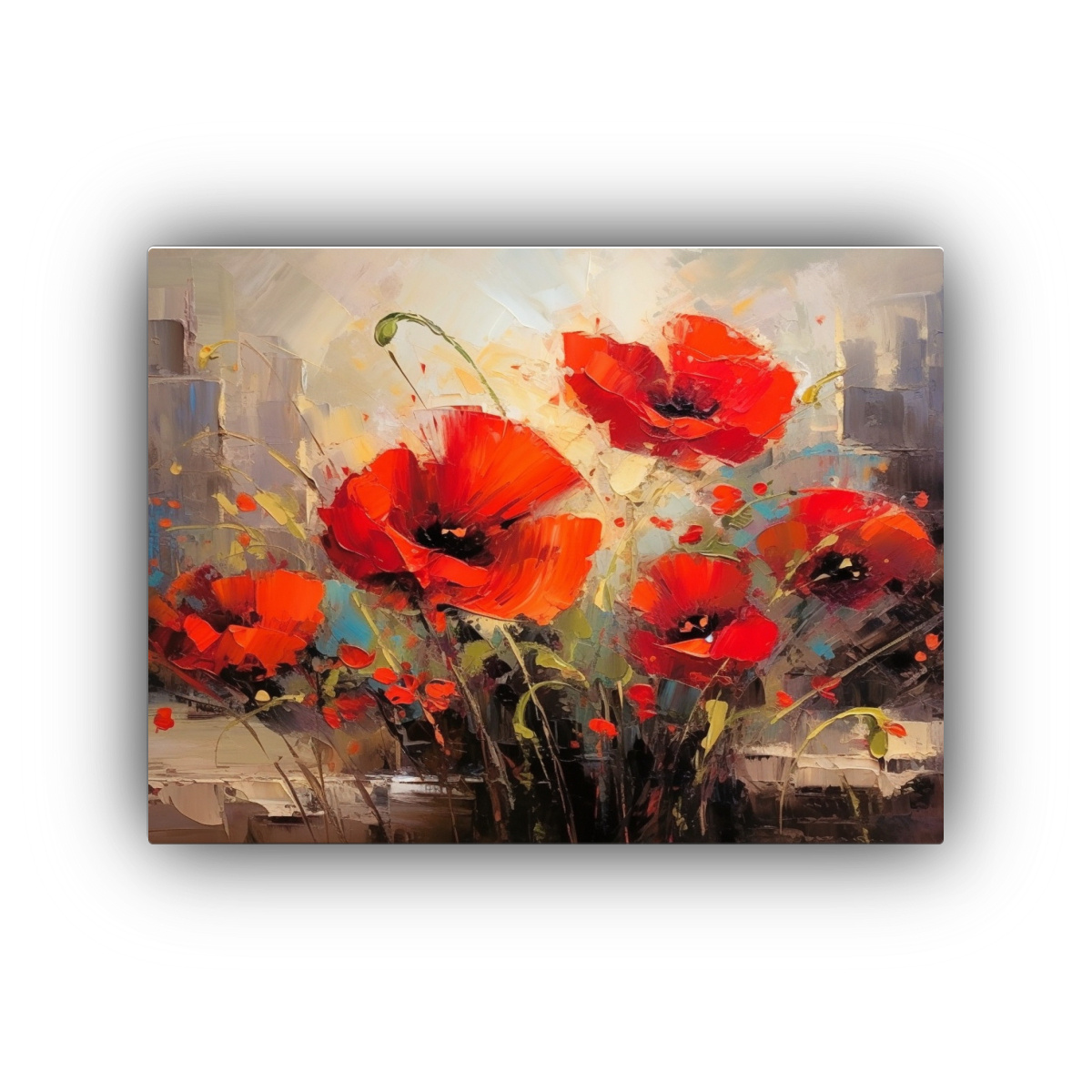 Agrega un toque de color y modernidad a tus espacios con esta pintura abstracta de amapolas rojas en amarillo Envío rápido y gratis en Santiago, ¡compra ahora!
