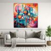 Este cuadro abstracto con formas geométricas y vibrante esquema de colores sería perfecto para decorar tu sala de estar o tu estudio Combínalo con muebles y accesorios en tonos neutros como blanco, gris o negro para crear un contraste moderno y elegante También puedes colocarlo en una pared de acento en tu dormitorio o en tu oficina para añadir un toque de color y creatividad ¡Deja volar tu imaginación y dale vida a tus espacios con este cuadro único!