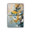 Decora tu baño con un cuadro abstracto que contiene hojas tropicales en tonos azul marino grisáceo, plateado, mostaza, gris, chocolate y menta En DecoCuadros encontrarás la mejor calidad y los precios más económicos del mercado Diseños exclusivos y entregas rápidas y gratuitas en Santiago