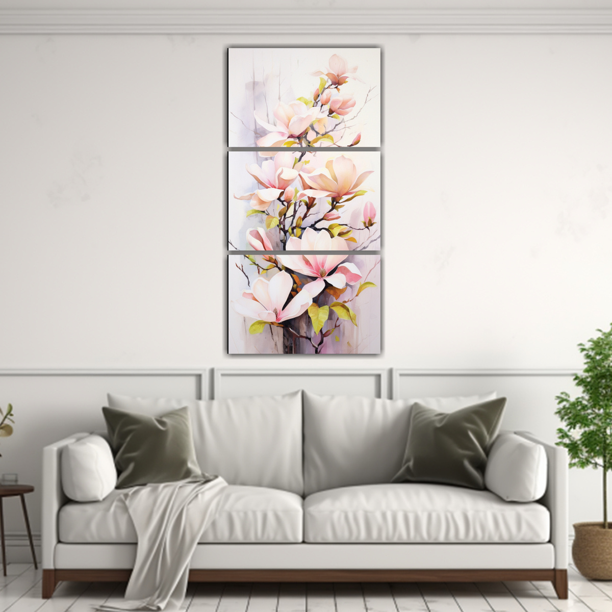 DecoCuadros ofrece cuadros decorativos con diseños exclusivos Entrega rápida y gratuita en Santiago, envíos express a regiones Magnolias blancas y rosas en un cuadro moderno y elegante ¡Adquiere el tuyo ahora!