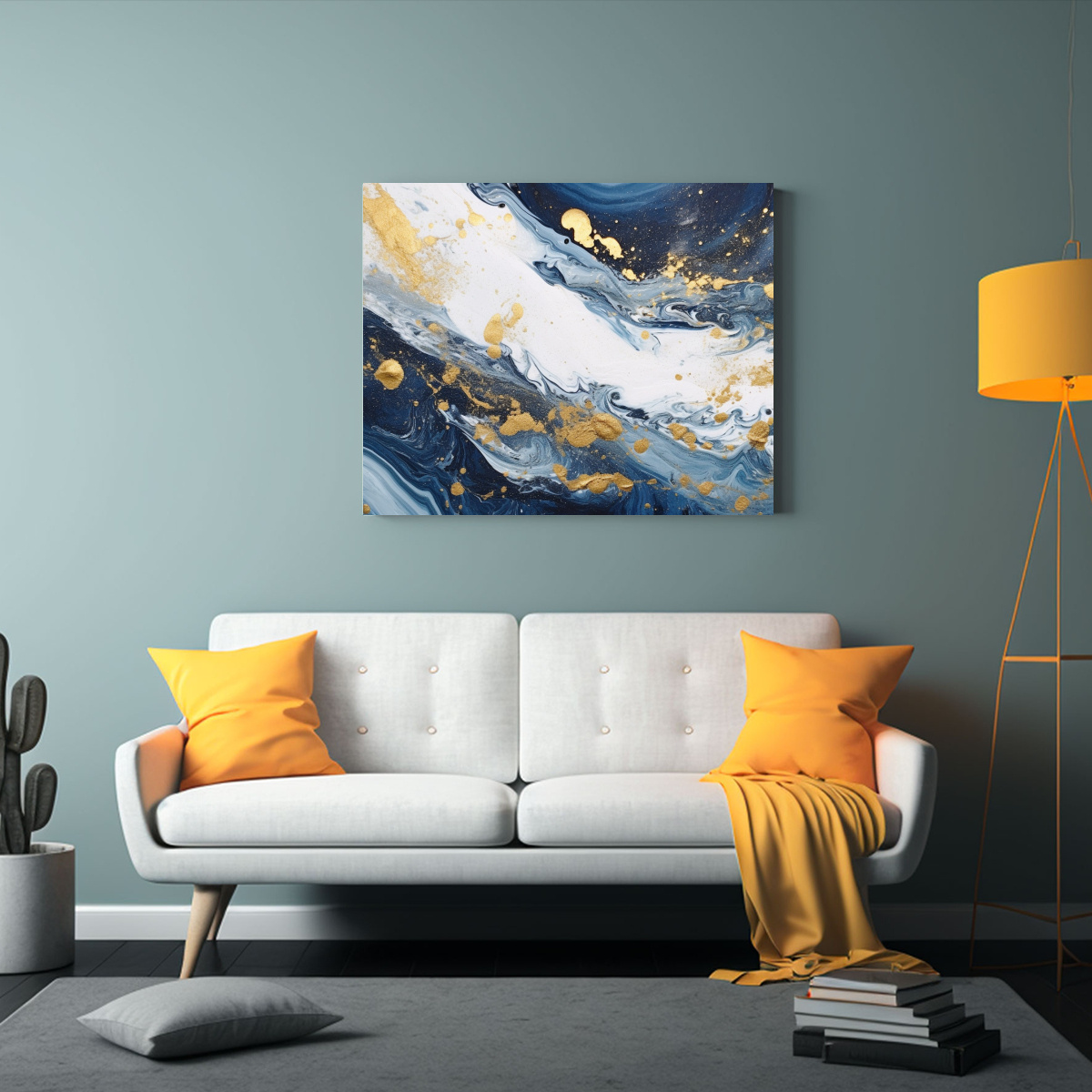Pintura Abstracta Con Remolinos Azules Y Dorados: Arte Decorativo Impactante