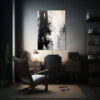 Este cuadro abstracto contemporáneo en blanco y negro sería perfecto para decorar tu sala de estar Colócalo sobre un sofá de color neutro y complementa con cojines en tonos beige y gris Añade una alfombra plateada y elementos decorativos en azul marino grisaceo para crear un ambiente sofisticado y moderno ¡Destaca tu estilo con este cuadro de diseño exclusivo de DecoCuadros!
