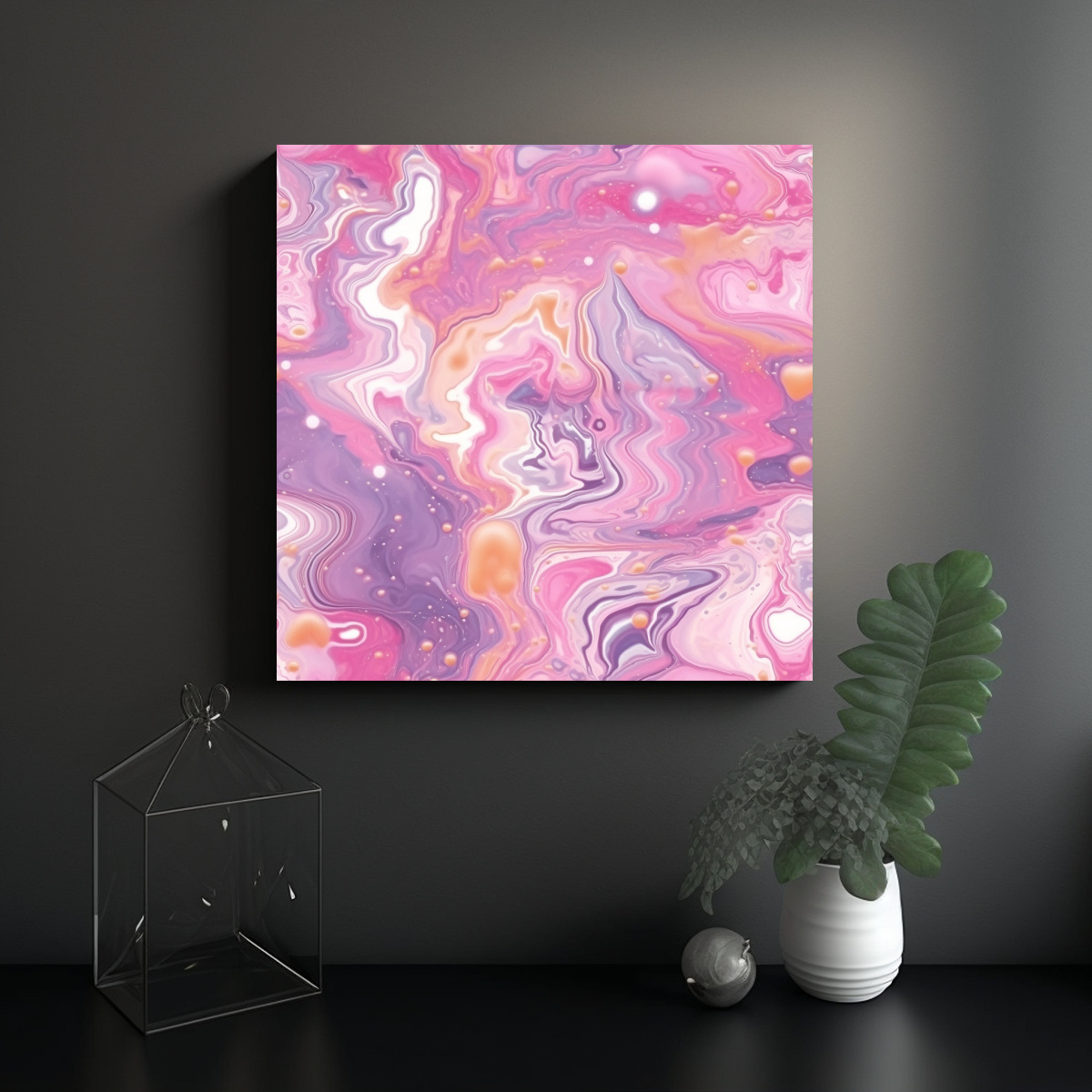 Este cuadro se vería impresionante en la sala de estar sobre un sofá de color neutro, creando un contraste elegante y moderno Combínalo con cojines en tonos lila y coral para lograr una armonía visual única en tu ambiente