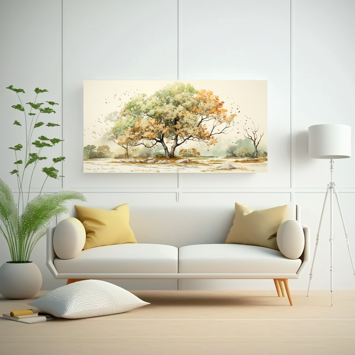 Pintura Abstracta De Algodón Artesanal Árbol De Alamo Colores Suaves