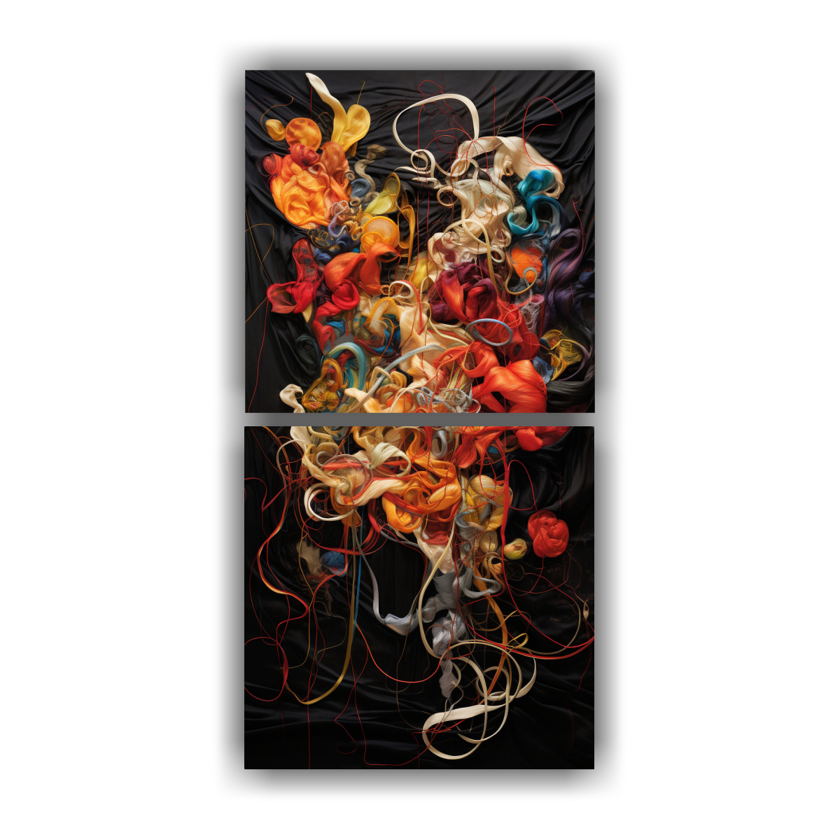 Pintura Abstracta De Alta Calidad Con Bastidor De Madera En Composiciones De Emociones Con Hilos De Alegría