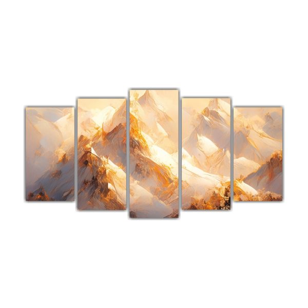 Pintura Abstracta De Alta Calidad: Montañas Nevadas Con Tonos Dorados
