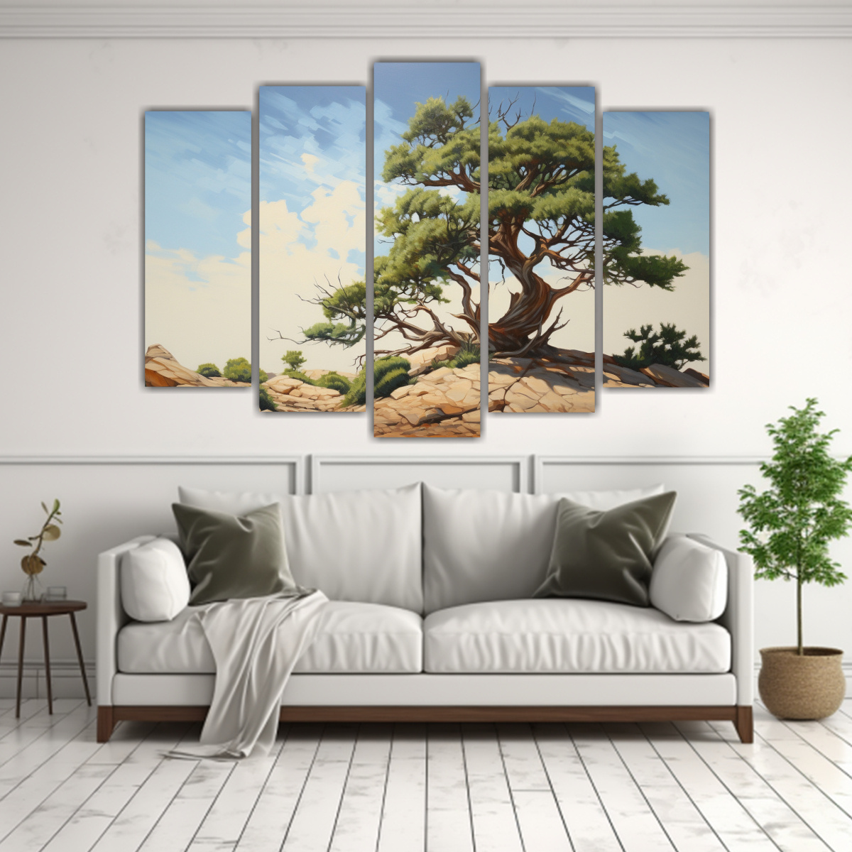 Pintura Abstracta De Alto Detalle Al Oleo Estilo Juniper Tree En Cinco Telas.