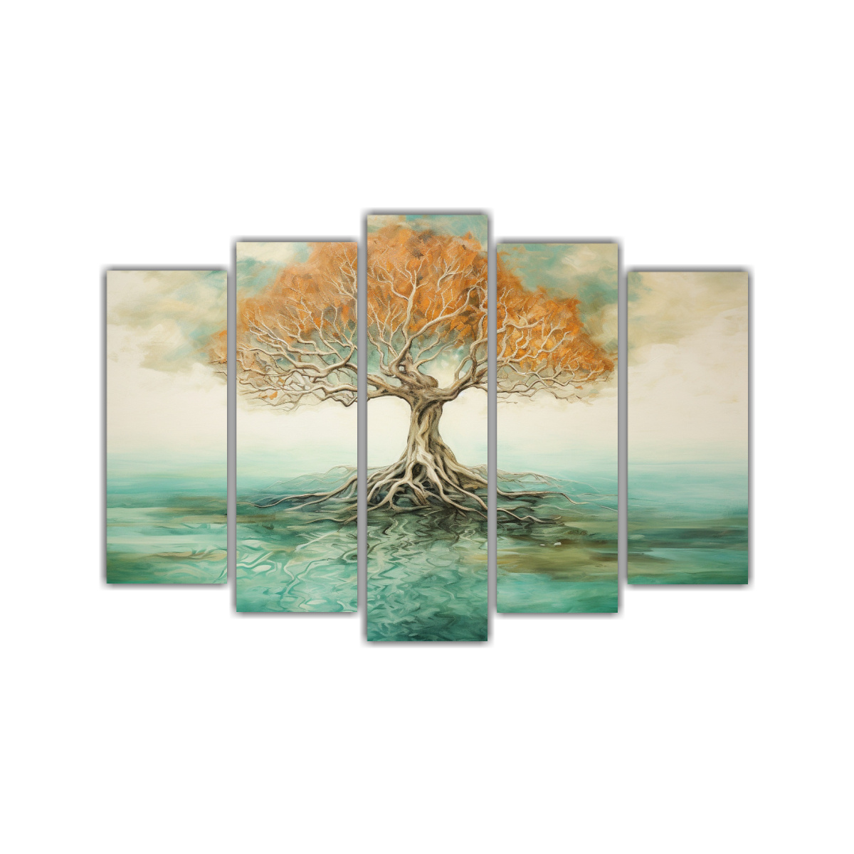 Pintura Abstracta De Alto Detalle De Un árbol De Mangle En Cinco Lienzos.