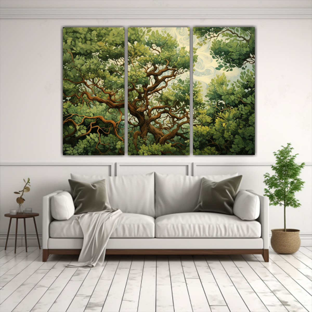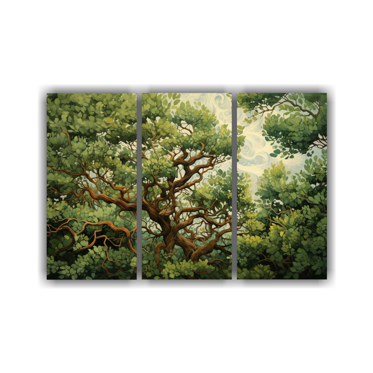 Pintura Abstracta De Alto Detalle Estilo óleo De Un árbol De Acebo En Tres Lienzos De Tela.