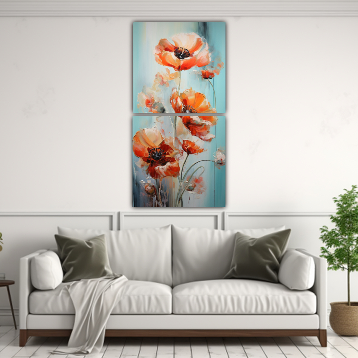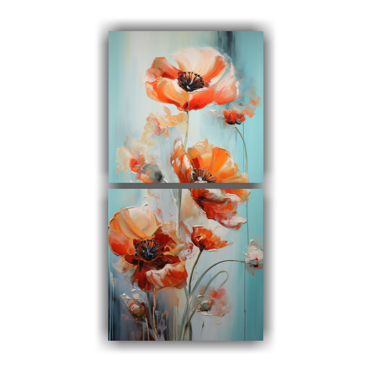 Este cuadro Pintura abstracta de amapolas en estilo Estilo óleo puede ser colocado en la sala de estar o en el dormitorio Combina perfectamente con muebles blancos y grises, creando un ambiente elegante y sofisticado También puedes agregar cojines o cortinas en tonos plateados o carmesí para resaltar los colores del cuadro ¡Atrévete a darle vida y estilo a tus espacios con este cuadro de DecoCuadros!
