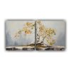 Pintura Abstracta De árbol Bonsái De Abedul En Colores Amarillo Y Dorado
