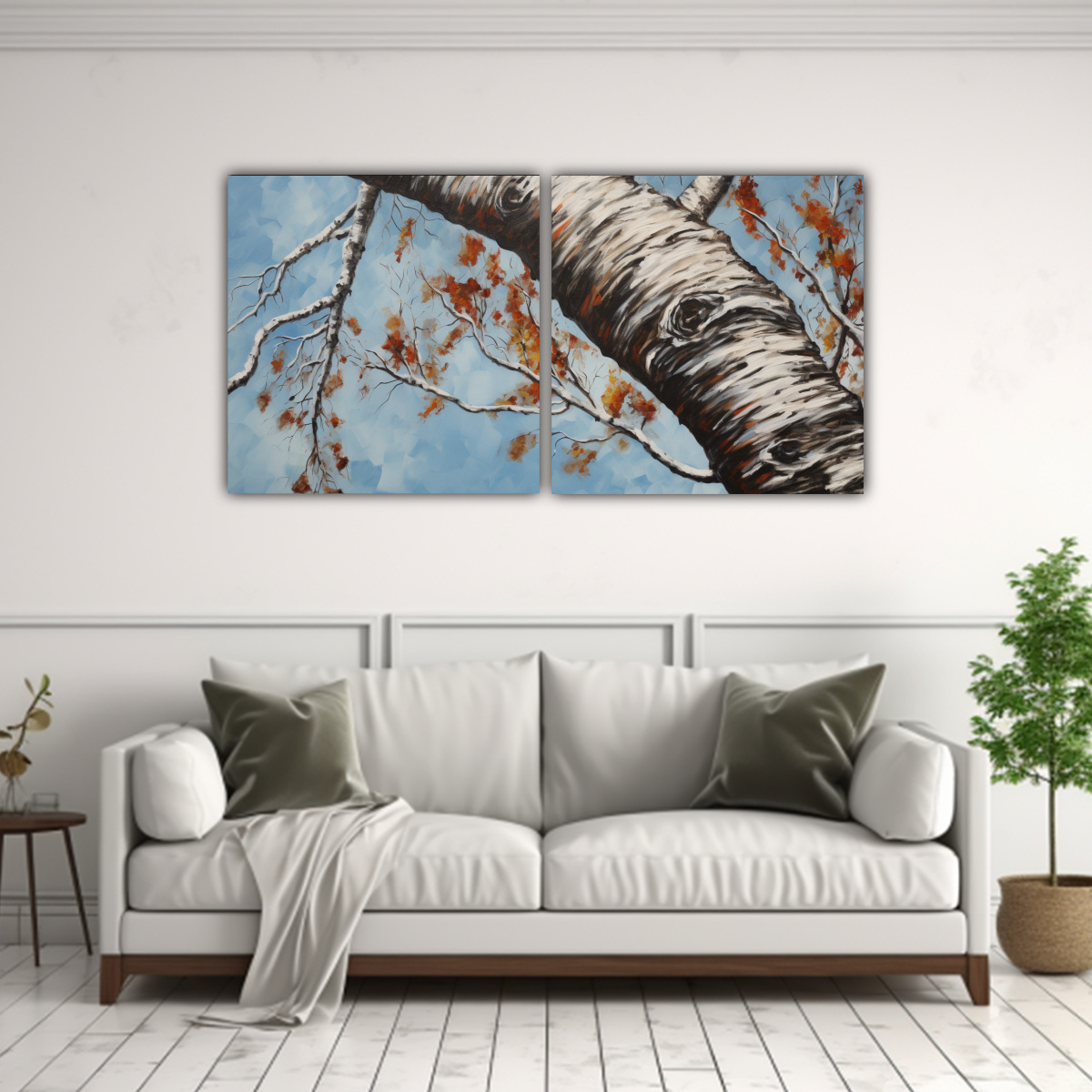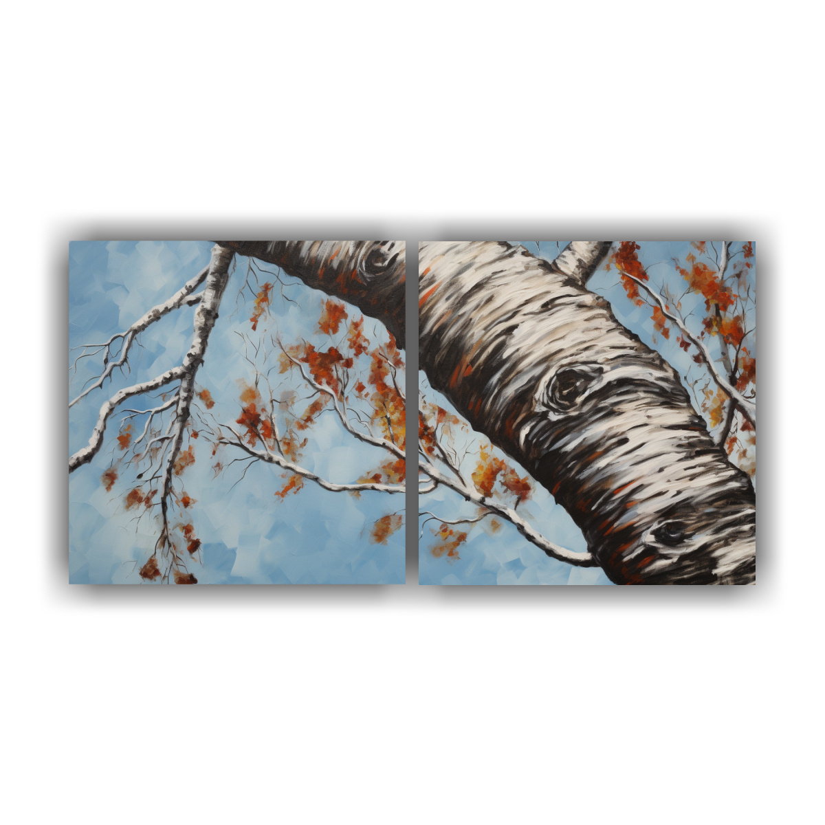 Pintura Abstracta De árbol De Abedul En Estilo De óleo Detallado Para Decoración Set De 2 Lienzos De Tela Simetría.