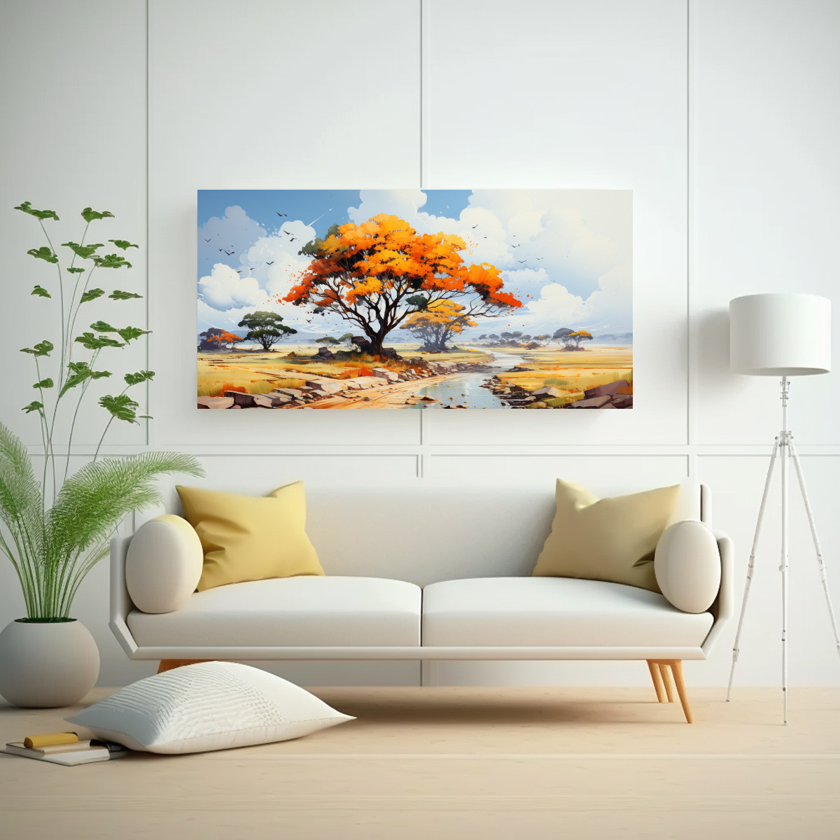 DecoCuadros ofrece una pintura abstracta de árbol de Acacia en colores rojo y naranja Impresa en tela de alta calidad y montada en bastidores de madera, este cuadro agrega un toque de elegancia y sofisticación a cualquier ambiente Los colores Coral, Beige, Chocolate, Azul Marino grisaceo, Turquesa, Plateado y Gris se combinan de manera armoniosa en esta obra de arte que transmite equilibrio y serenidad