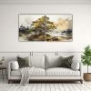 Pintura Abstracta De árbol De Pino Escocés En Tonos Dorados Y Negros Cuadro Decorativo Set 2 En Tonos Espacio