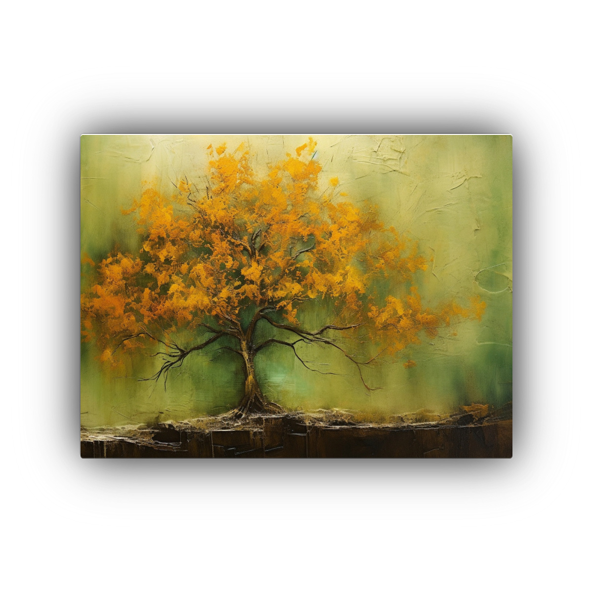 Este cuadro abstracto de árbol otoñal en estilo refinado sería ideal para decorar tu sala de estar, aportando sofisticación y armonía Colócalo sobre un mueble en tonos neutros para resaltar su belleza y crear un ambiente acogedor