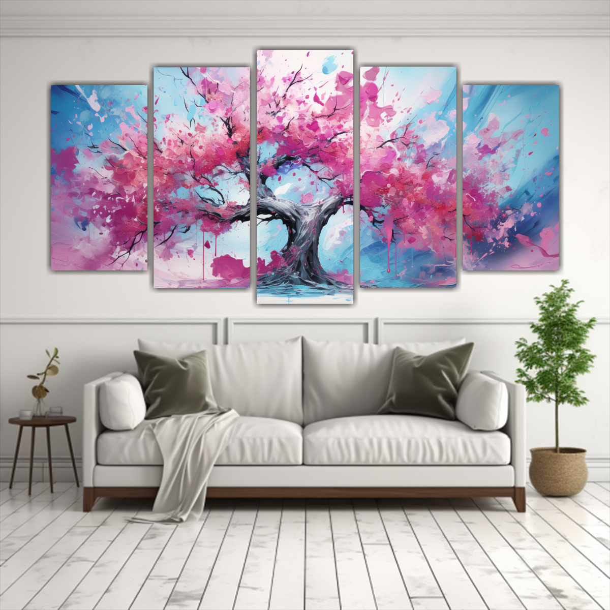 Este cuadro abstracto de árbol tropical en colores turquesa y rosa se verá espectacular en tu sala de estar Colócalo sobre una pared de color blanco o gris claro para crear contraste y resaltar su belleza Combínalo con cojines y cortinas en tonos turquesa y rosa para lograr una decoración coherente y elegante ¡No esperes más y dale vida a tus espacios con este cuadro exclusivo de DecoCuadros!