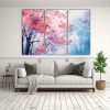 Pintura Abstracta De árboles De Arce Rosa Y Azul En Lienzo.