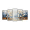Pintura Abstracta De árboles En Plata Y Blanco: Cinco Lienzos Hermoso Vida.
