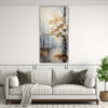 Este cuadro abstracto de árboles en plata y blanco sería perfecto para colocar en el salón de tu hogar Puedes combinarlo con muebles en tonos neutros como el beige y gris, para crear un ambiente sofisticado y moderno Además, puedes complementar la decoración con cojines y cortinas en tonos plateados y dorados, para resaltar los colores del cuadro No dudes en adquirir esta pieza única y darle un toque de elegancia a tu hogar